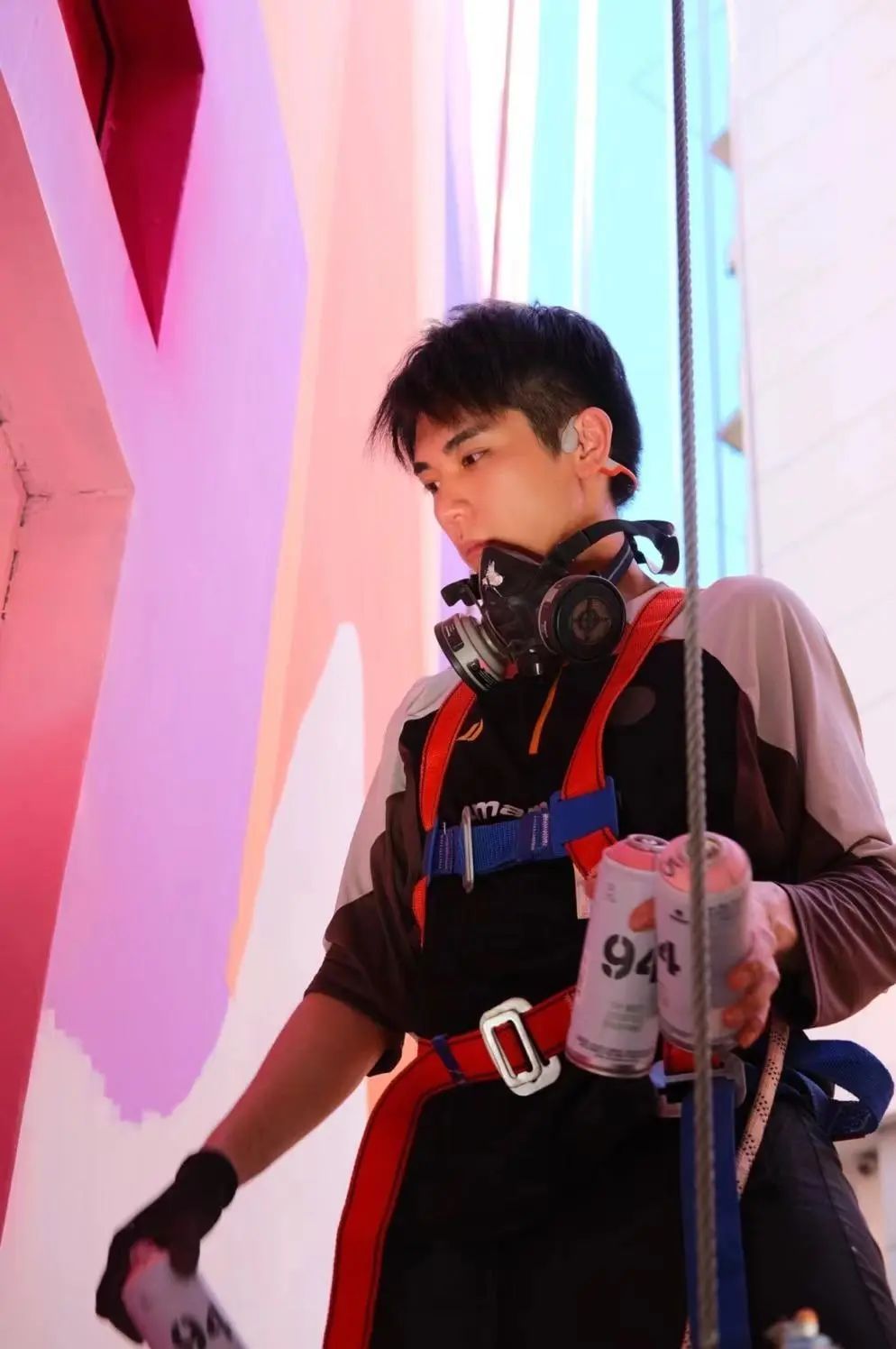 在墙体涂色过程中,有个别居民反映其窗外周边墙体颜色过于强烈会反射室内,豫园街道通过“零距离家园”理事会平台积极开展协调会,经过多方沟通,最终达成居民、艺术家以及施工方共识,高效解决了各种问题。在全过程人民民主的参与下,楼内居民们也特别期待画作的完成,当艺术家陈博士冒着户外40多度高温进行高空悬吊工作时,有些居民还从自家窗户口给他递送矿泉水,和他聊聊墙绘进展。