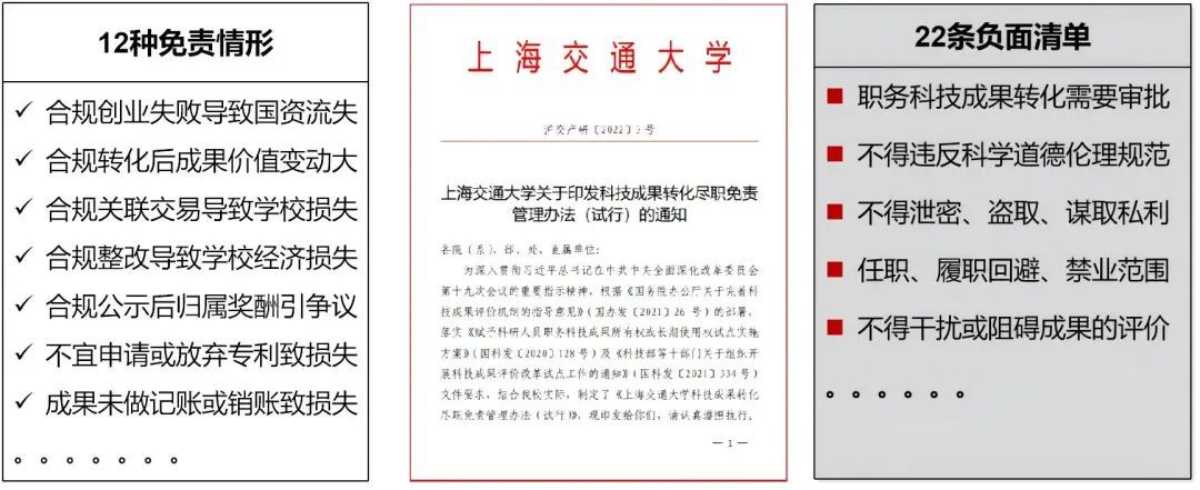 六是建立尽职免责管理办法和负面清单。基于“三个区分开来”的原则,破除阻碍科技成果转化的藩篱和障碍,制定12条免责情形和22条负面清单,消除顾虑,激发活力。