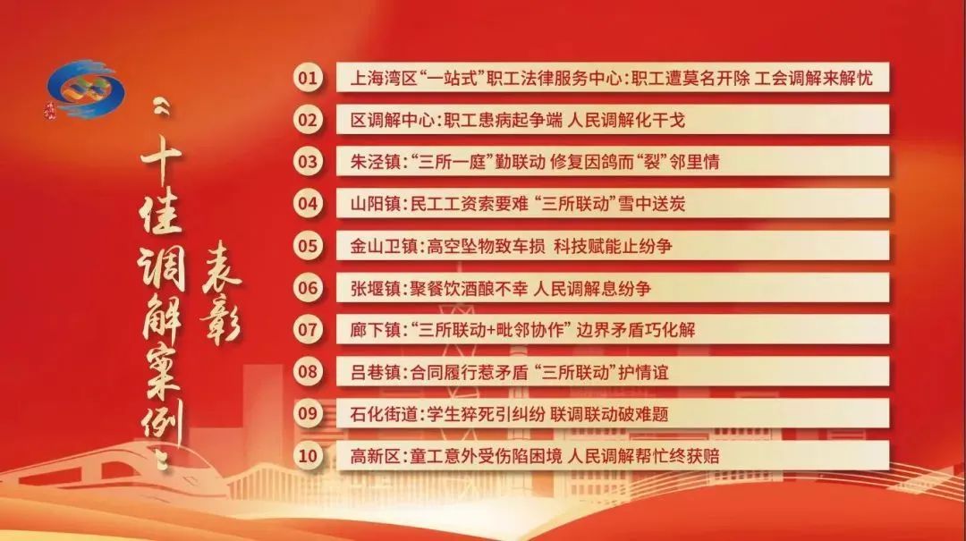 活动表彰了金山区“十佳调解案例”。通过“十佳调解案例”的展示,传播调解智慧,弘扬调解精神,提升金山区人民调解水平。