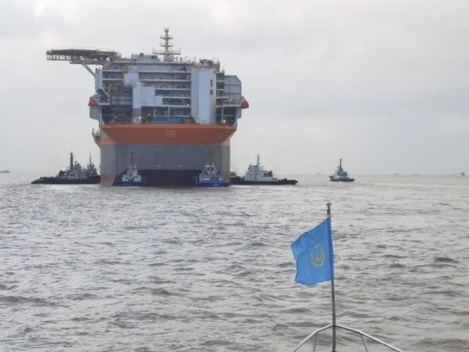 10月17日,FPSO“H1500”轮在浦东海事局的精心护航和拖轮船队的协助下,由振华长兴基地顺利拖航至外高桥船厂。