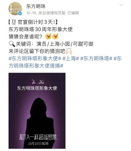 最近@东方明珠 官宣喜讯: