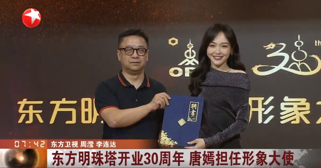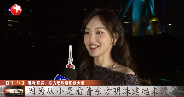 唐嫣在接受采访时表示,“那么重要的一个任务交给了我,我觉得是莫大的荣幸,我也非常开心。因为从小是看着东方明珠建起来,看到它一个球、两个球、三个球一点点建起来,所以心里面也非常有这种,怎么说呢,从小一起成长的感觉。”