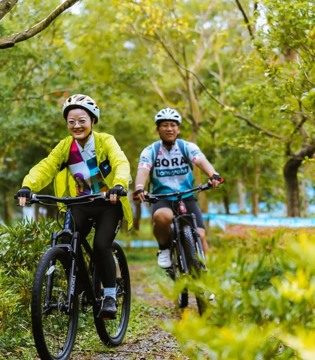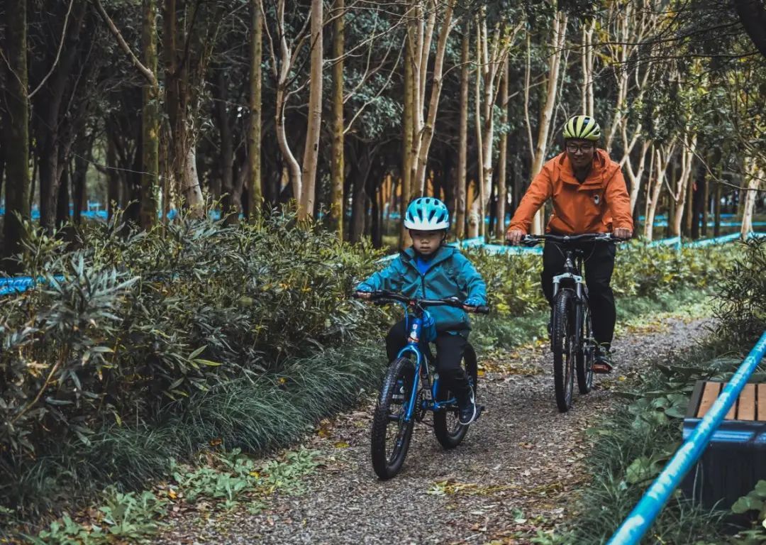 骑行爱好者吕普和好友特地从宝山赶来,林间的波浪道、乱石路、沟壑……都让向风而行的他们越发兴奋,“这场体验活动特别刺激,里面林荫环绕,秋景尽收眼底,是绝佳的秋日骑行地。”