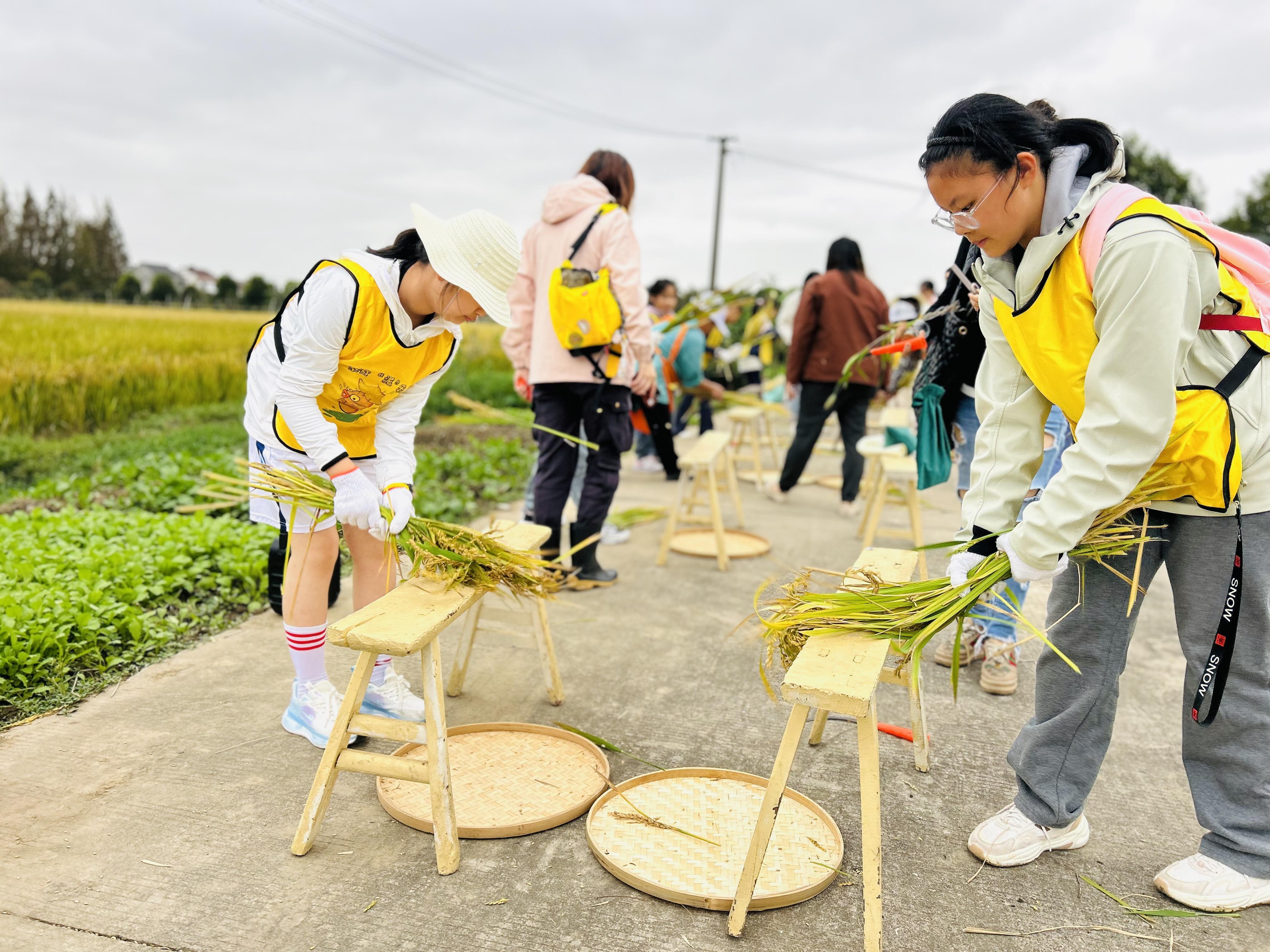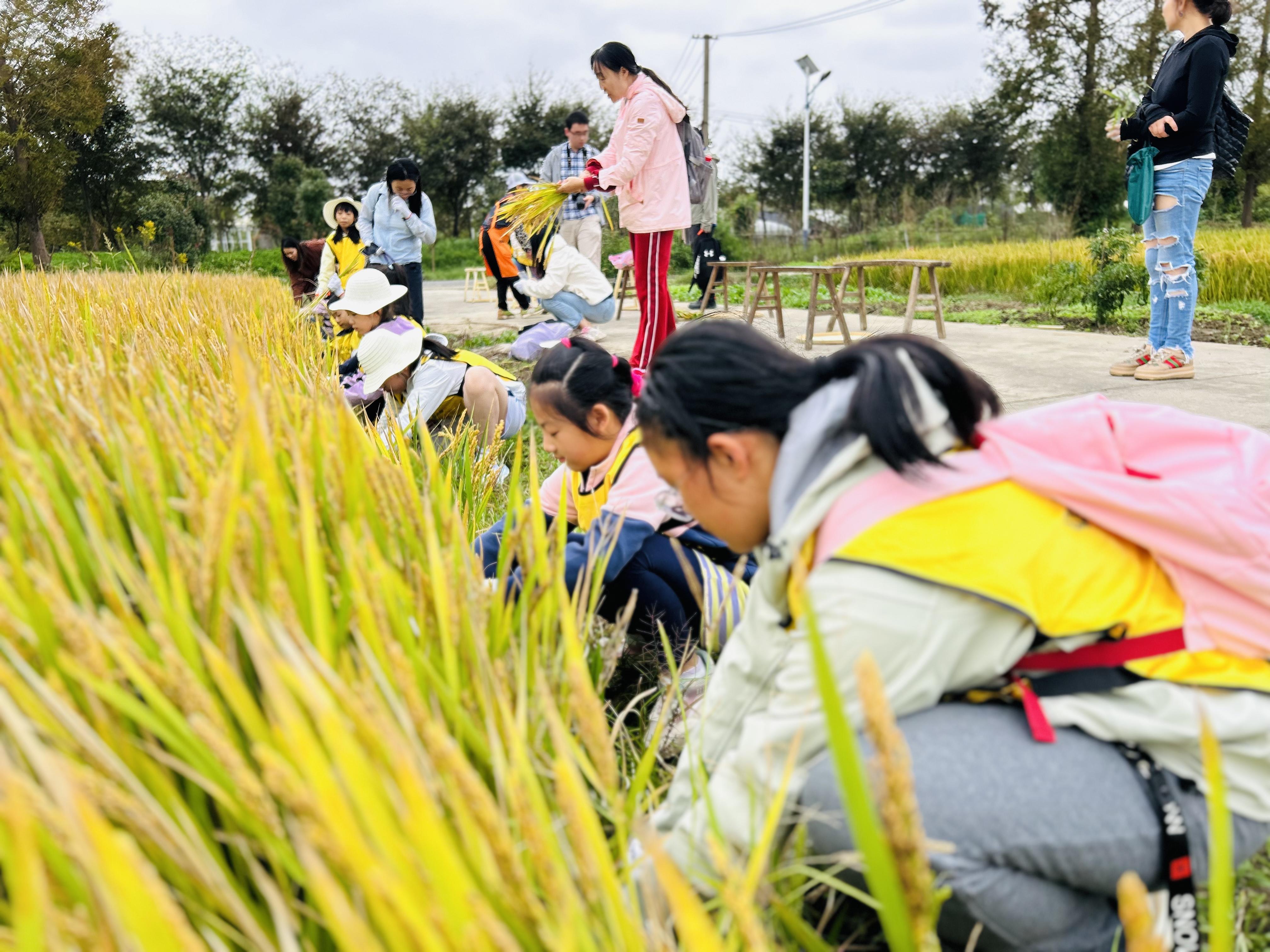 课后,“袋星人”们化身为小稻农,手握镰刀,挽起衣袖,踏入稻田,开始了他们的首次收割体验。尽管动作略显生疏,但那份参与的喜悦和对丰收的憧憬却让每个人都沉浸其中。家长们见状,也纷纷加入这一行列,与孩子们并肩作战,尝试古法脱粒,感受农耕文化的深厚底蕴与独特魅力。在秋日的田野里,孩子们与父母享受这份难得的亲子时光。