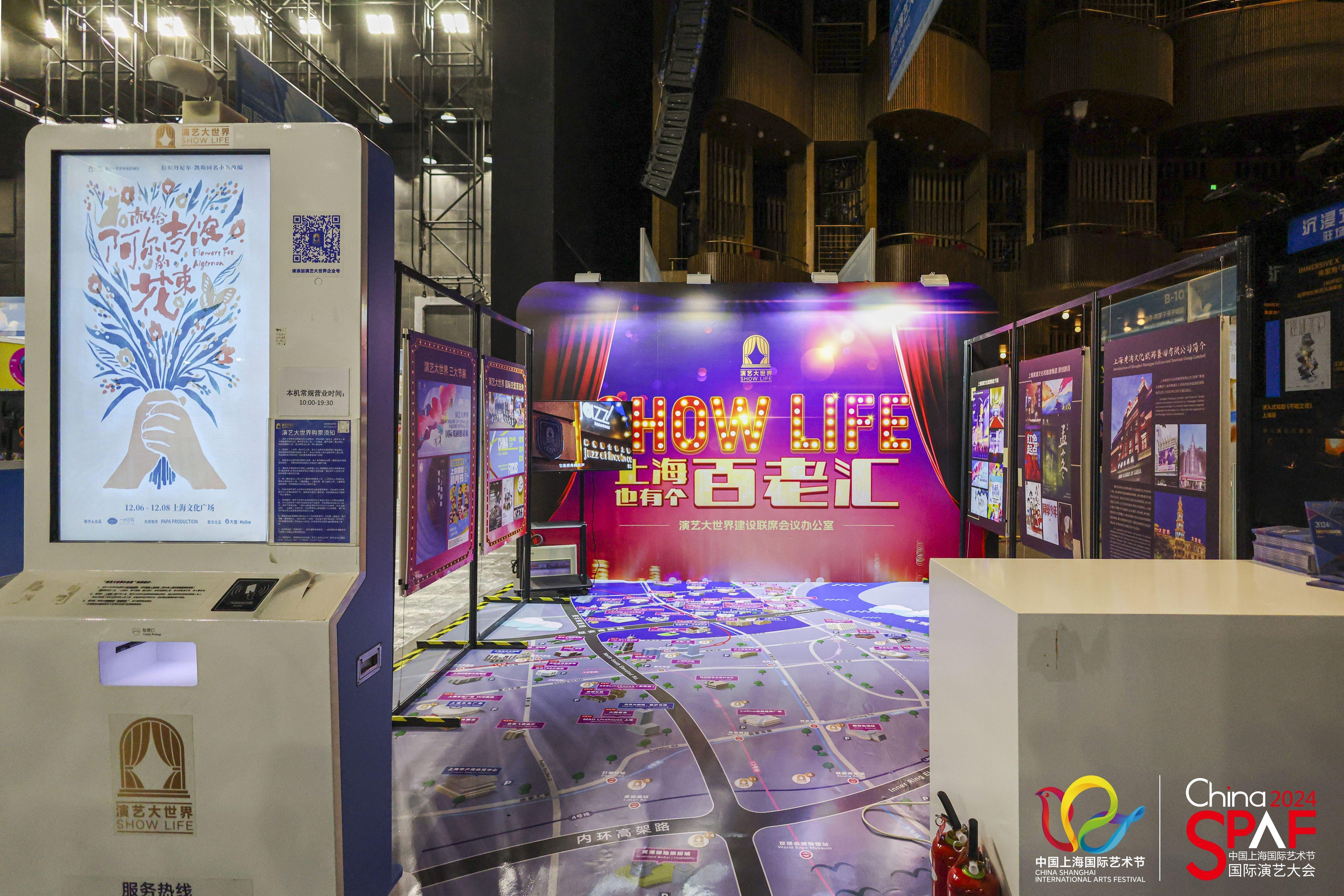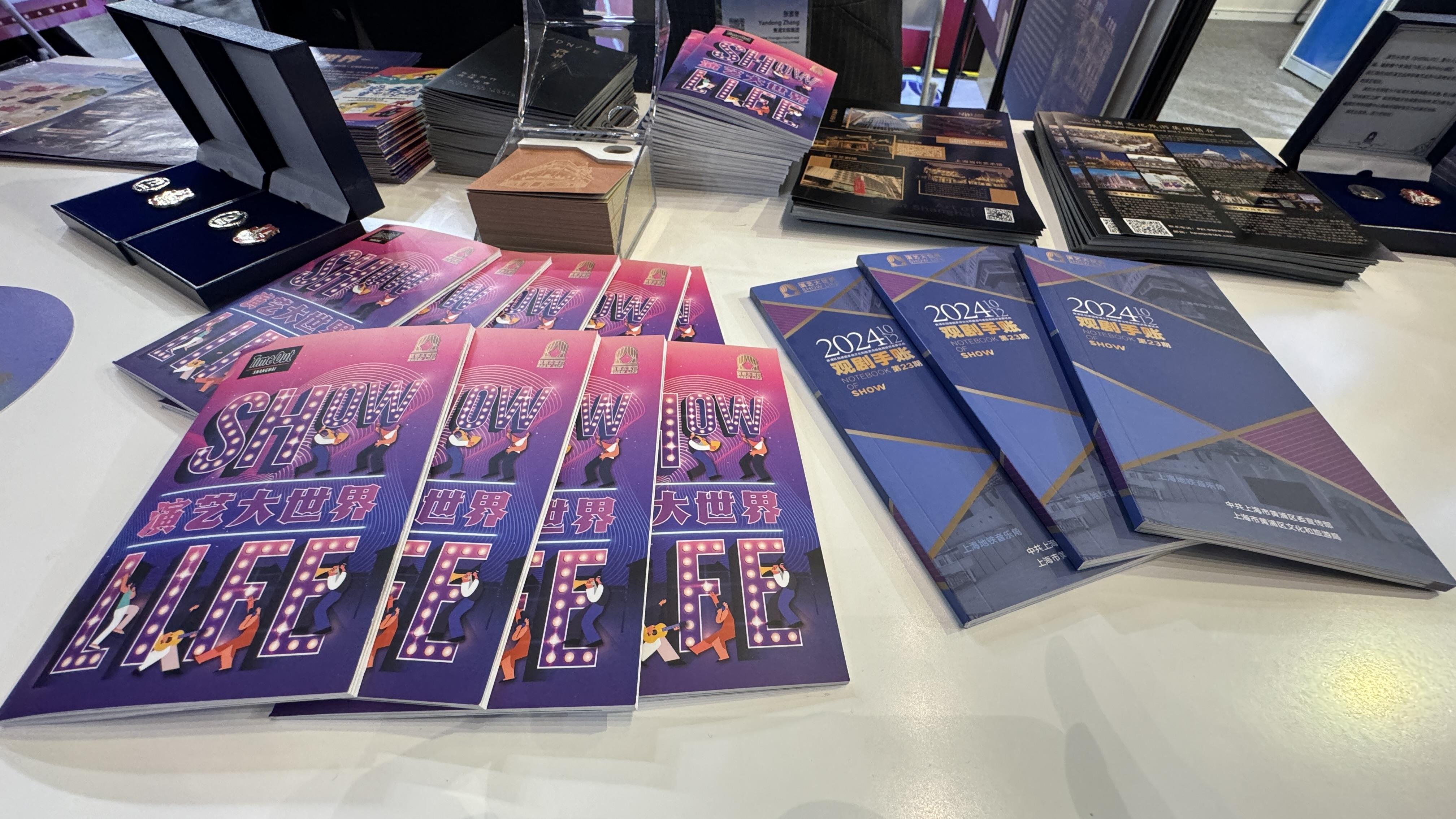 现场发放了演艺大世界中英文别册、剧场地图,循环播放演艺大世界宣传片,展示演艺大世界精品文创。值得一提的是,演艺大世界补贴票自助售票机也被搬到展会现场。记者看到,许多来自全国各地的参观者都对这台自助售票机感兴趣,不少人现场购买到心仪演出的补贴票。