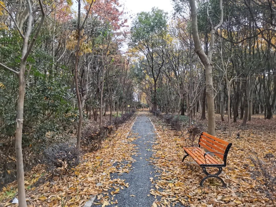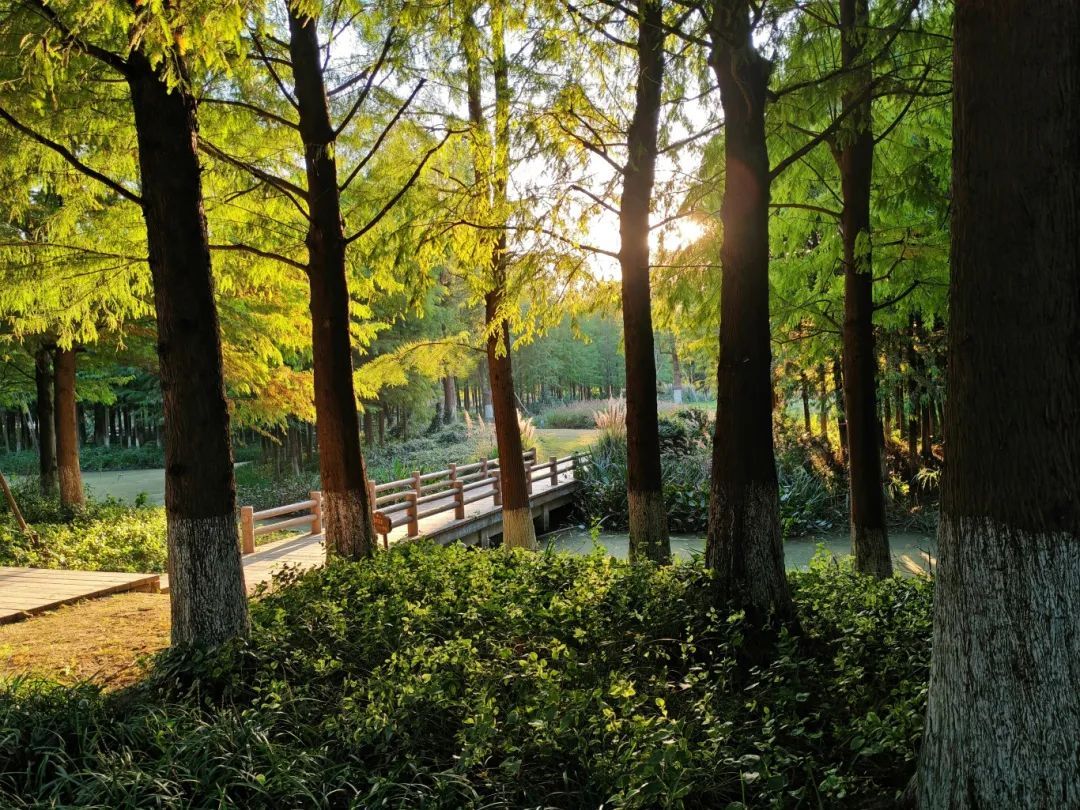 沿着蜿蜒的石板路前行,尽头是一片水杉、无患子、女贞和香樟构成的林海,在这个季节,北场开放林地宛如一个五彩斑斓的调色盘。