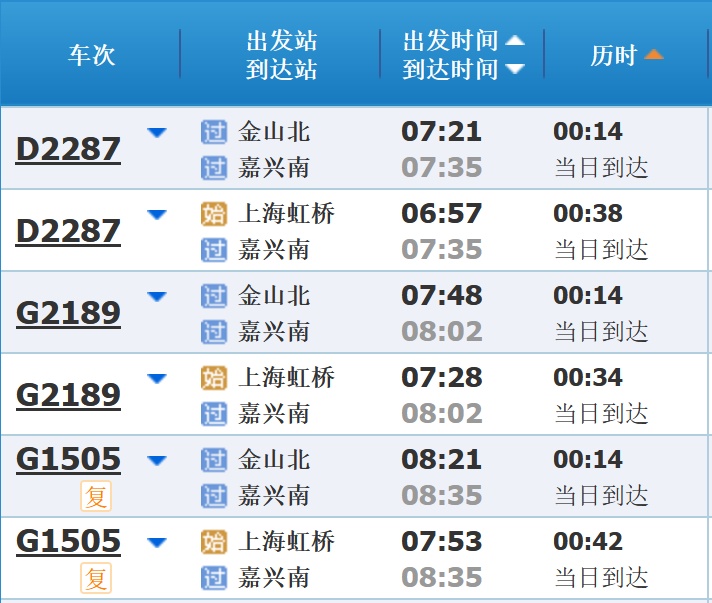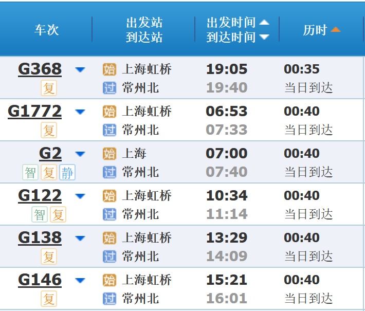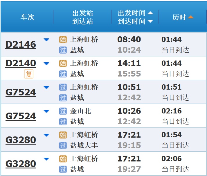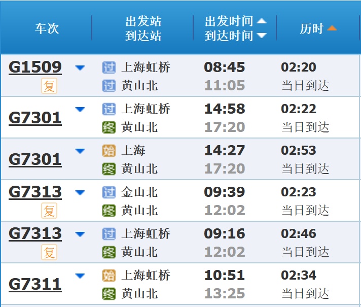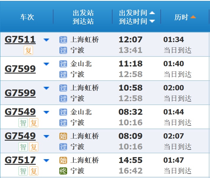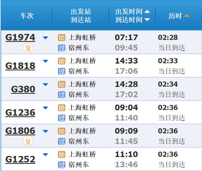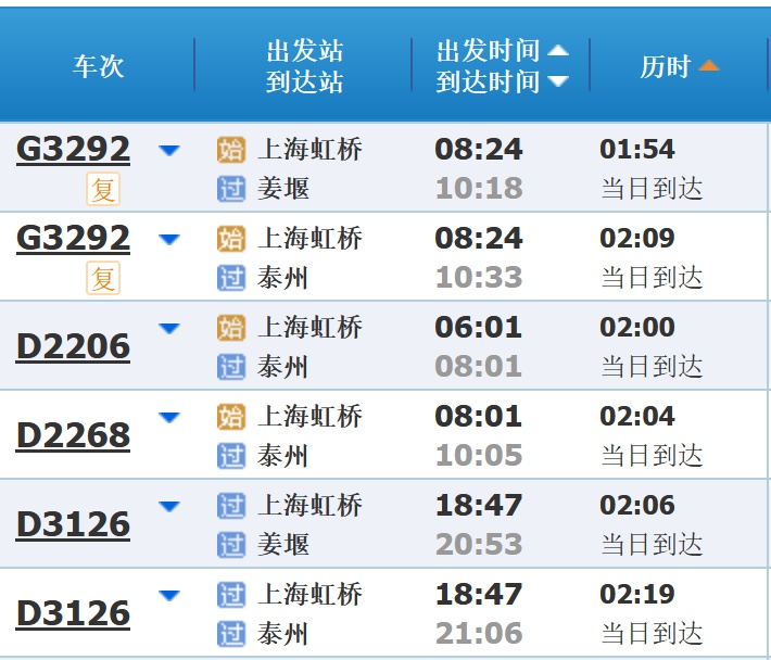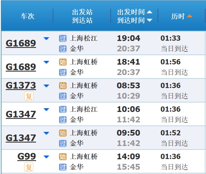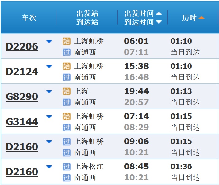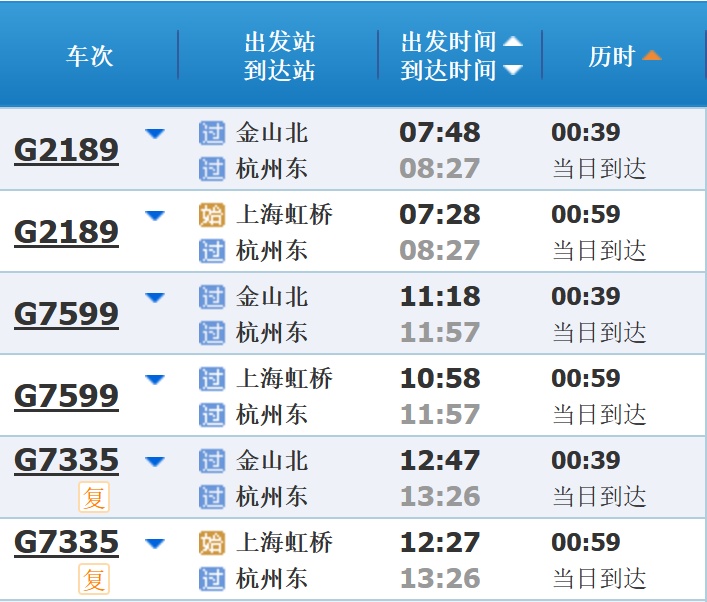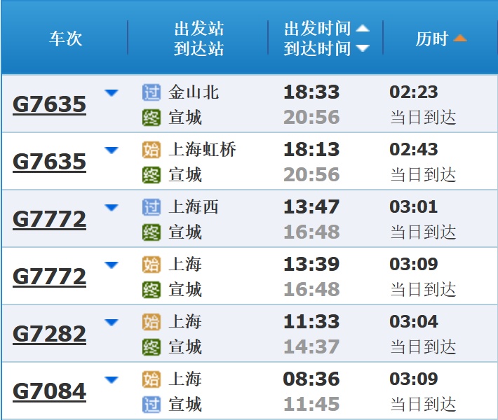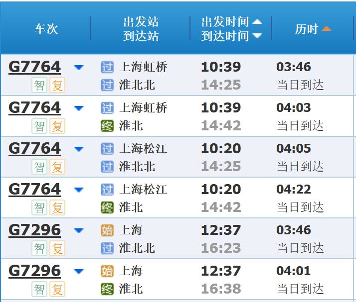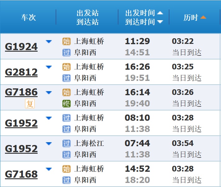 部分车次信息