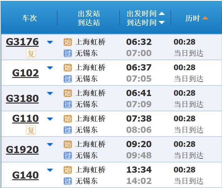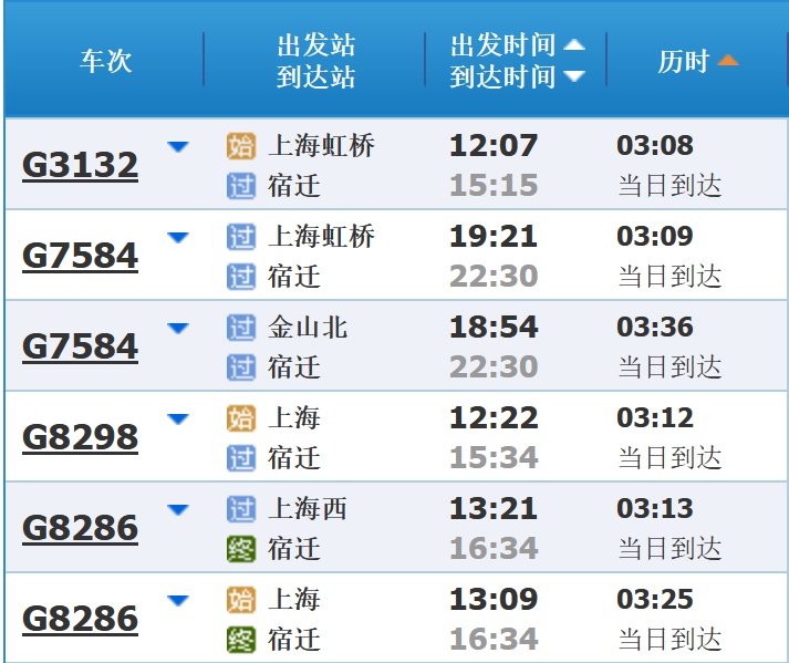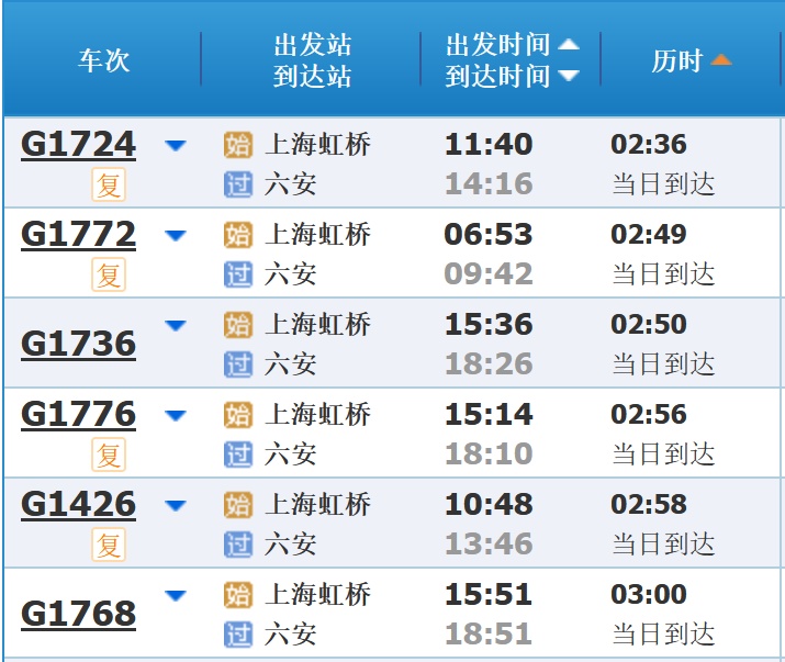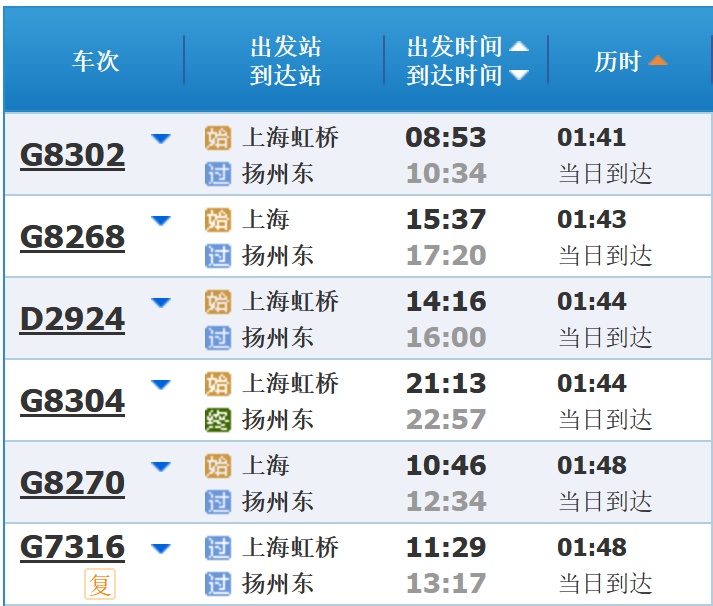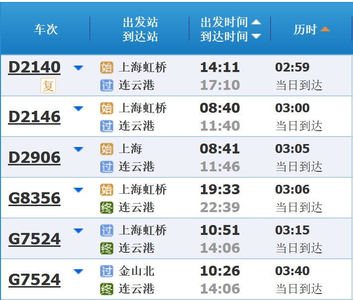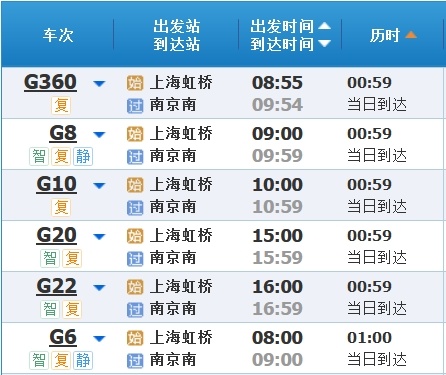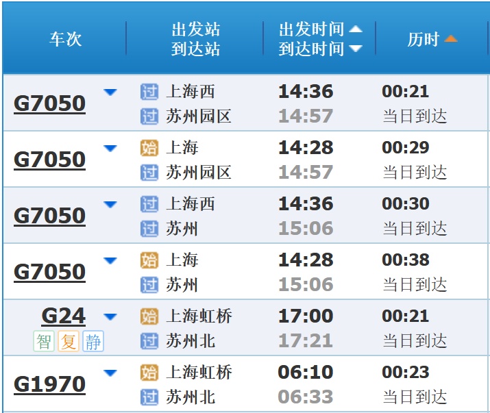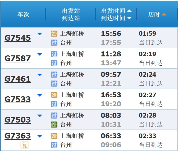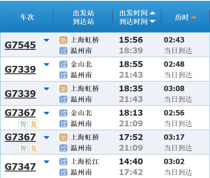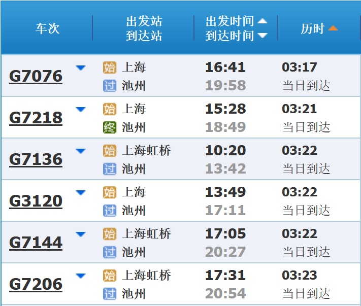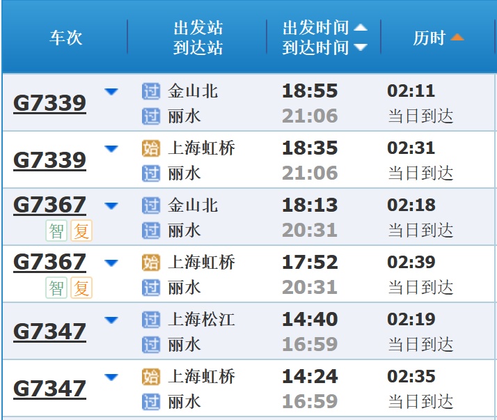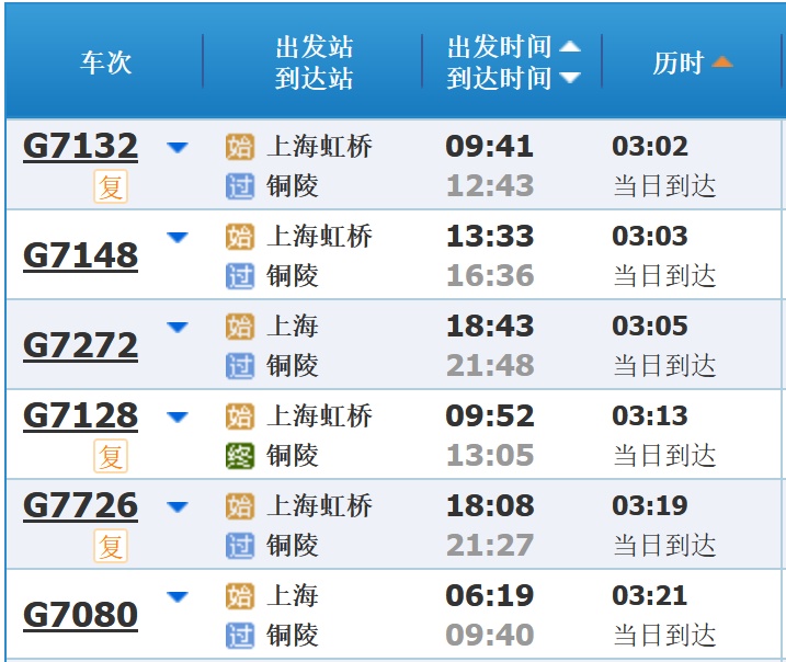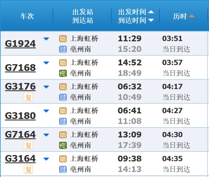 部分车次信息