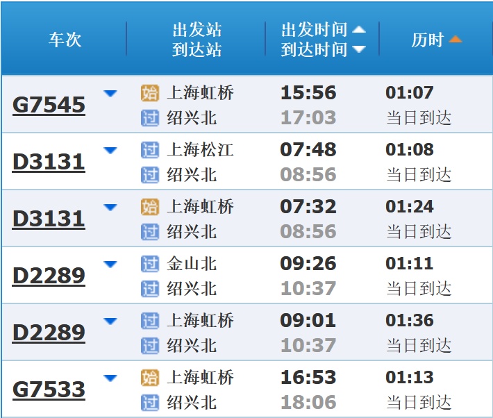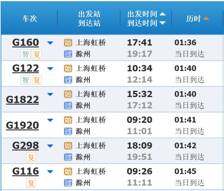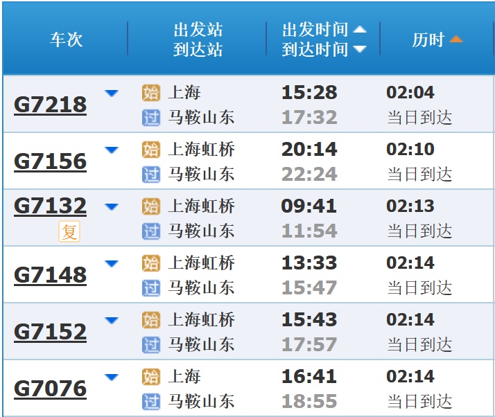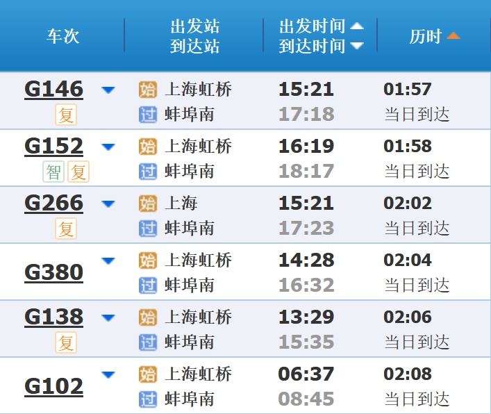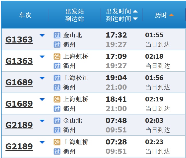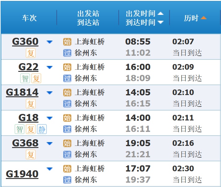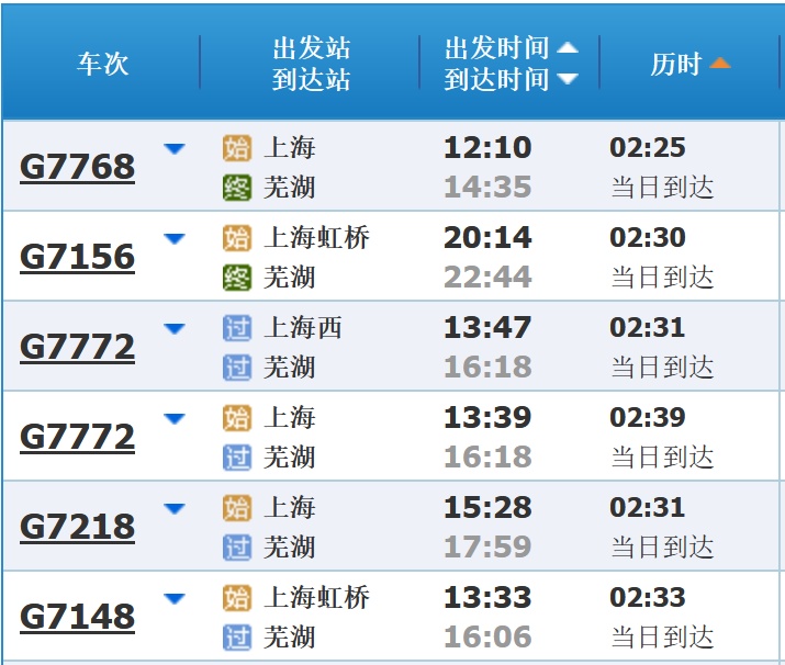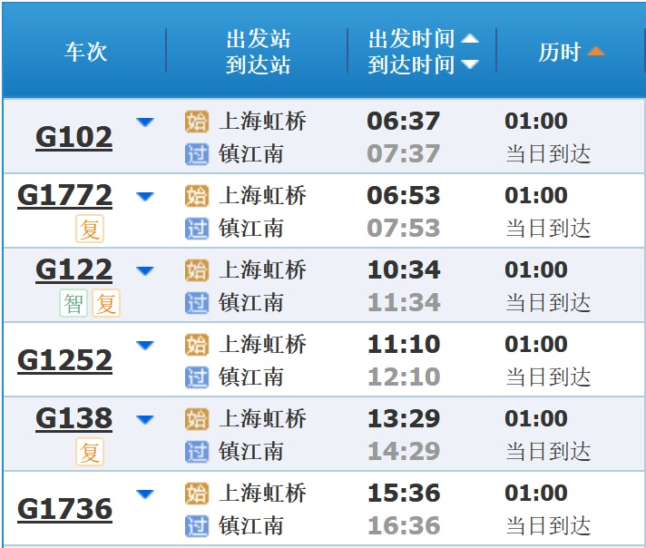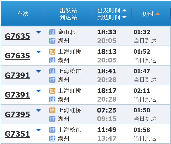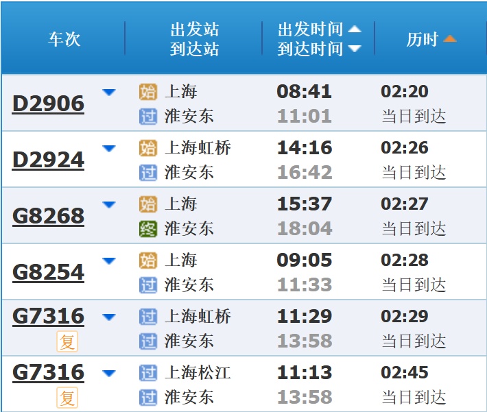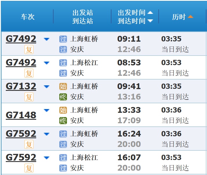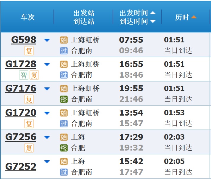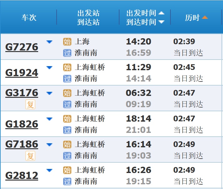 部分车次信息