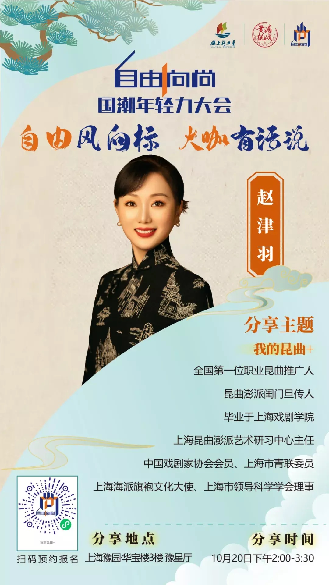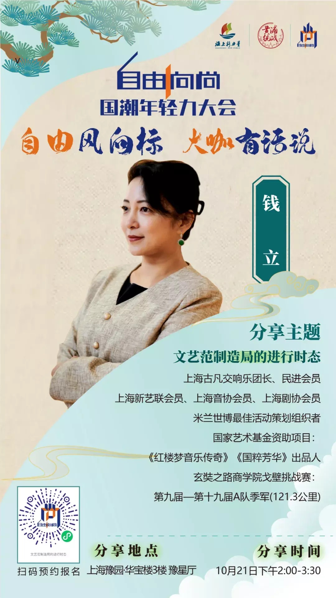 第三届“自由·向尚”国潮年轻力大会“1+6+X”模式,不仅为自由职业者提供了一个跨界交流、思想碰撞的平台,也为公众打开了一扇了解和体验国潮文化的窗口。这不仅是一场与自由职业者有关的大会,更是一次对传统文化的现代诠释和创新实践。它将激发更多年轻人的创造力和创业精神,推动中国传统文化在新时代焕发新的活力。此次活动由上海市新的社会阶层人士联谊会、黄浦区新的社会阶层人士联谊会、上海市黄浦海燕博客公益发展中心承办,得到了豫园股份、守白艺术·忆想天开、上海BANG的支持。