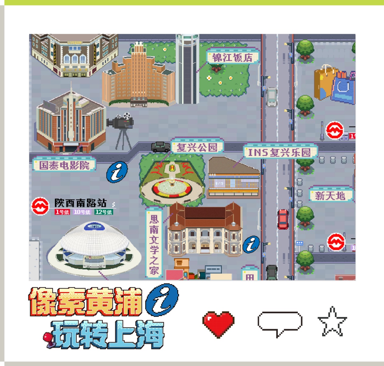 不管你是90后还是00后,这种充满回忆感的像素画风,直接把人带回了小时候玩像素游戏的时光,又给黄浦区的现代景色增添了独特的怀旧味道。不少小伙伴表示,“打开地图那一刻,感觉自己像是打开了童年通关的游戏关卡!有内味了!”