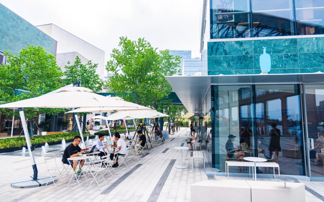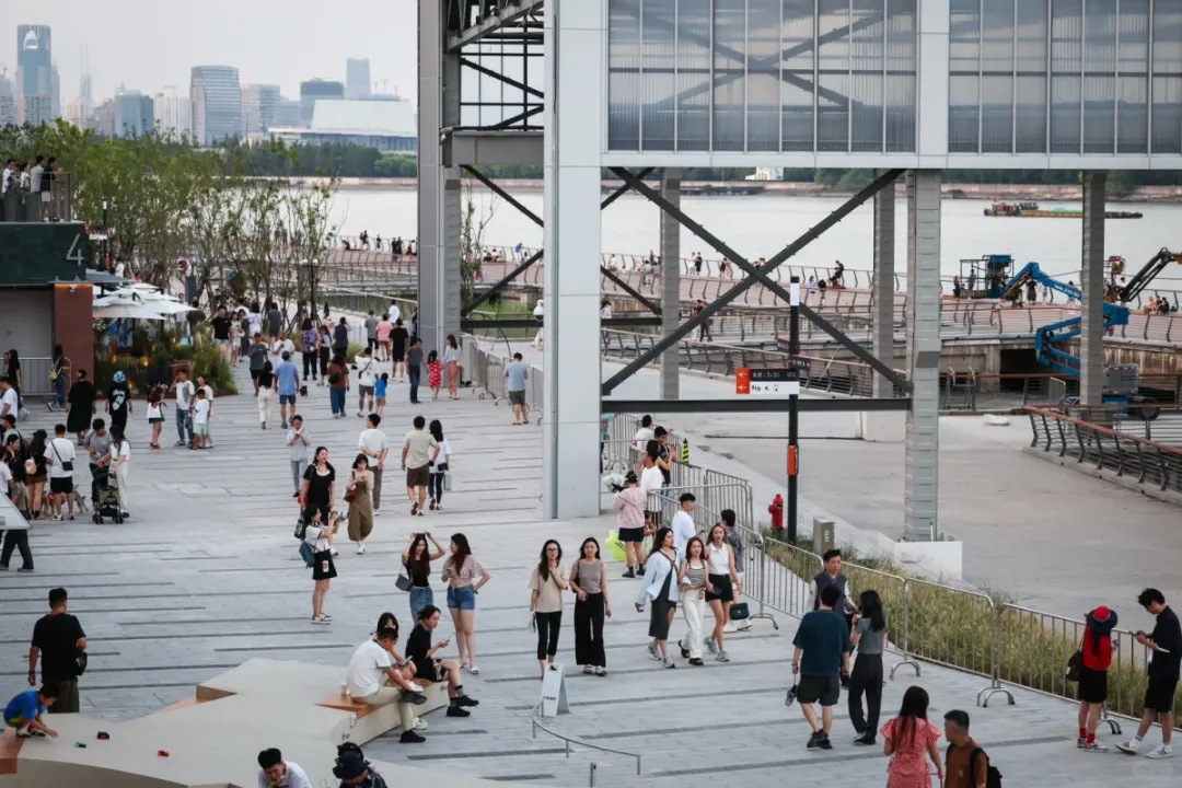 “滨水”是西岸梦中心最具特色的标签之一,这里有约800米长的黄浦滨江岸线。