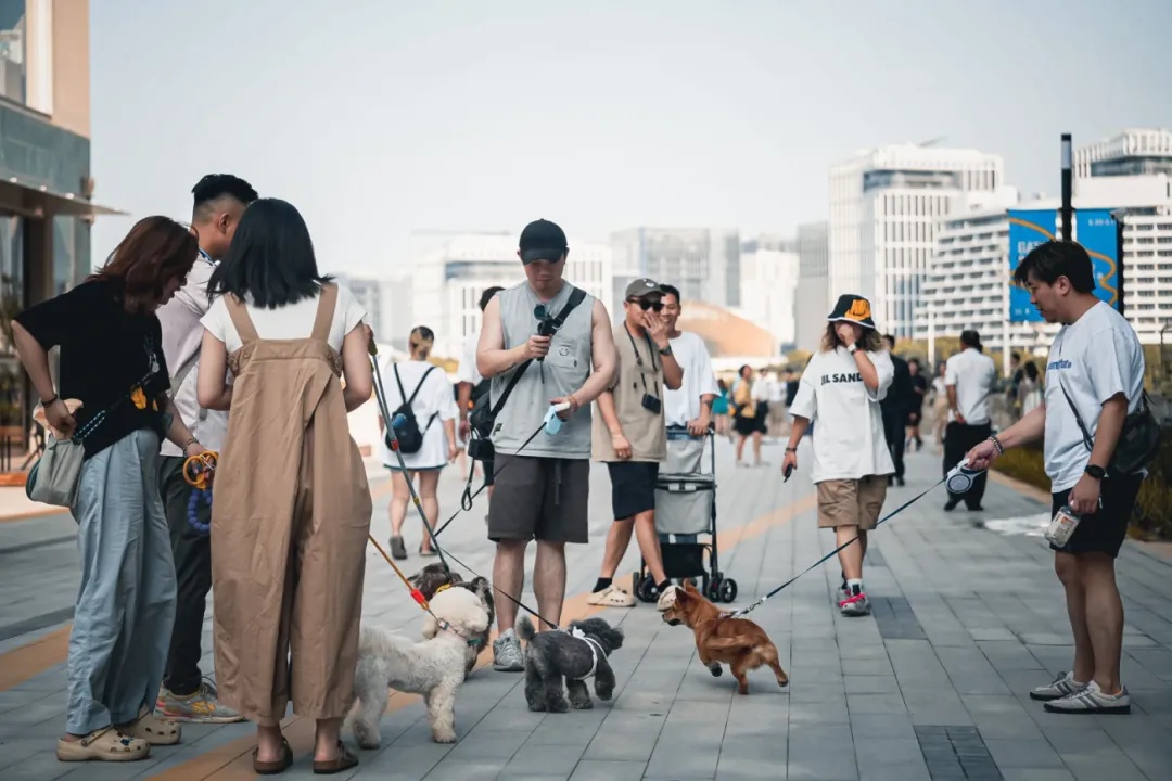 这里还是宠物友好型街区,可以遇见好多可爱的毛孩子。路边还贴心地设置了不少宠物喝水盆,甚至还有宠物休息区。