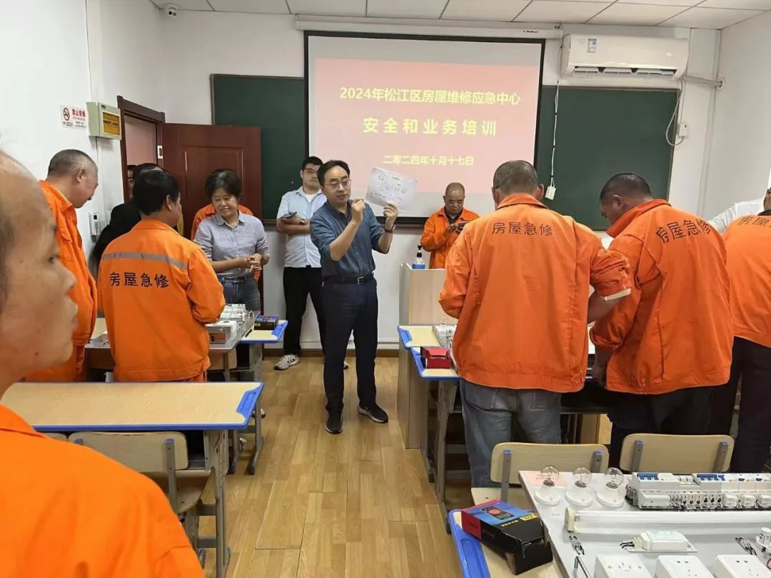 为了培养和提高松江区房屋维修应急中心员工的安全意识及专业技能,积极宣贯落实安全生产法的相关要求,根据年度工作计划,10月17日,松江区房屋维修应急中心在孜汇职业技能培训中心组织开展2024年度安全和业务培训,各分中心共计50多名维修人员参加培训。区物业管理中心主任马力强、区房屋维修应急中心主任唐磊及相关人员出席培训开班仪式。