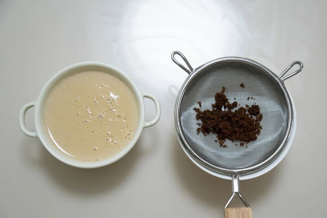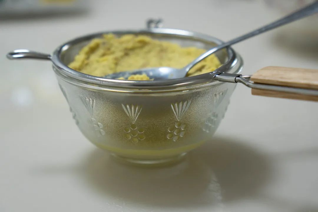 2.姜蓉倒入筛网、挤压出姜汁