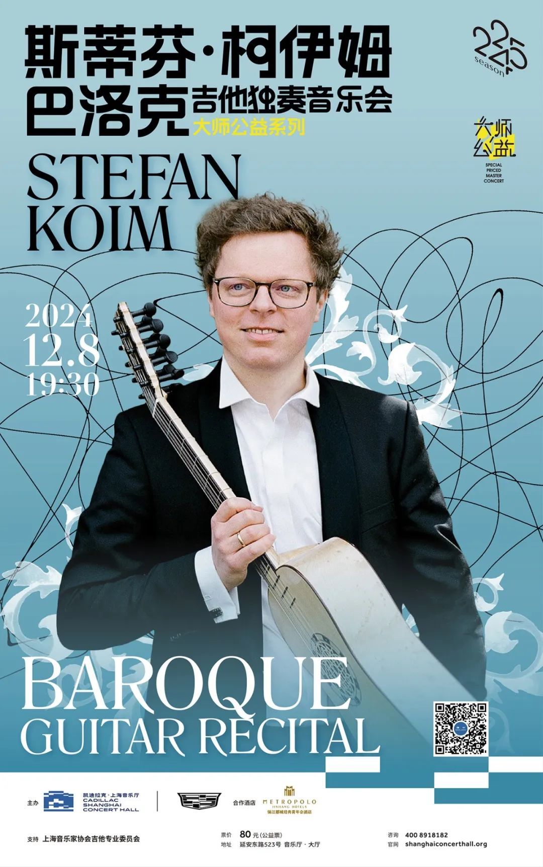 12月8日,敬请期待巴洛克吉他演奏家斯蒂芬·柯伊姆带我们畅游在“巴洛克”的音乐海洋当中,感受巴洛克吉他的“复古魅力”,重返西方音乐的黄金年代!