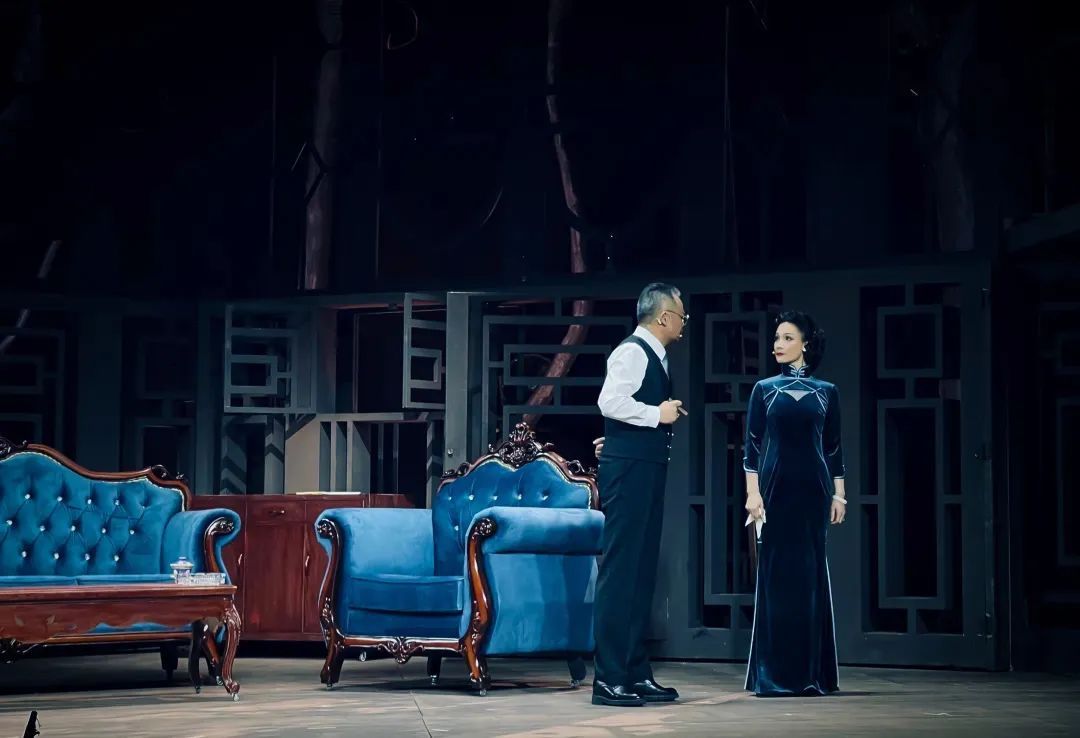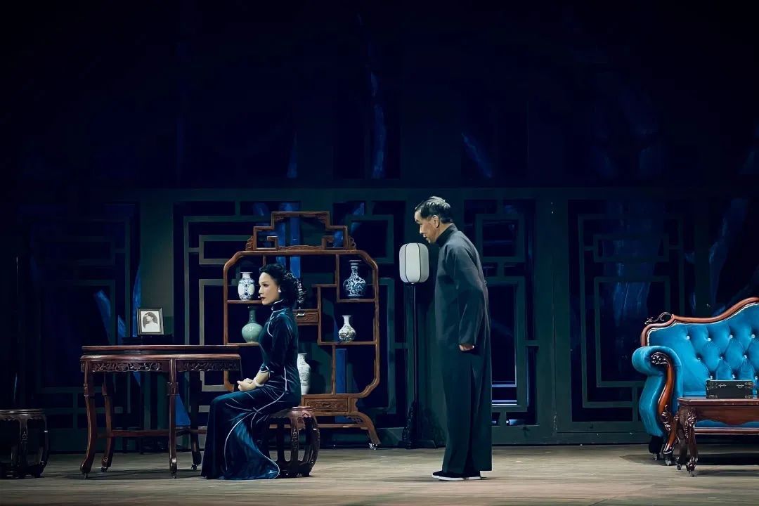 舞美设计上,剧组大胆创新,巧妙融合现代与传统元素,冷色调的旗袍、镂花窗棂共同构筑了一个既压抑又充满历史感的封建氛围。这种设计不仅保留了传统文化的精髓,也契合了现代观众的审美需求,增强了舞台的视觉冲击力。