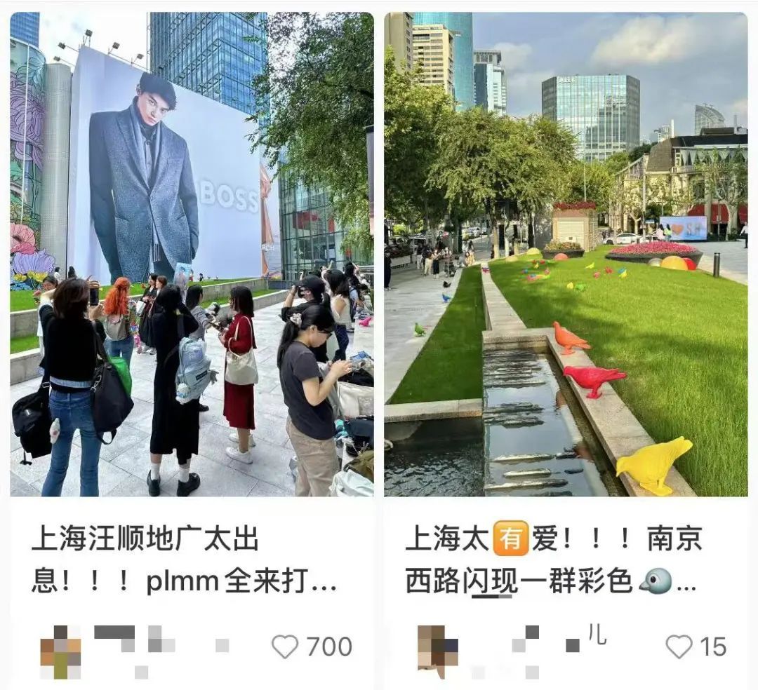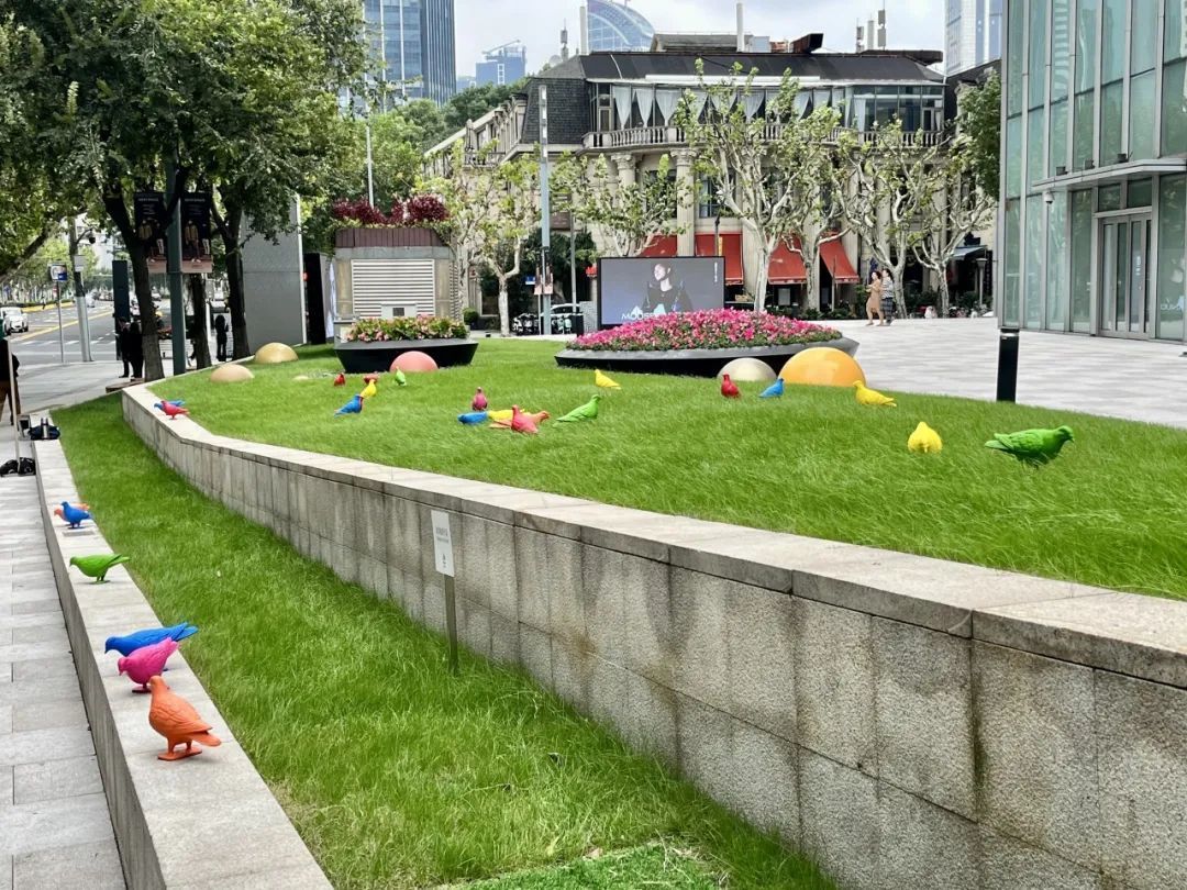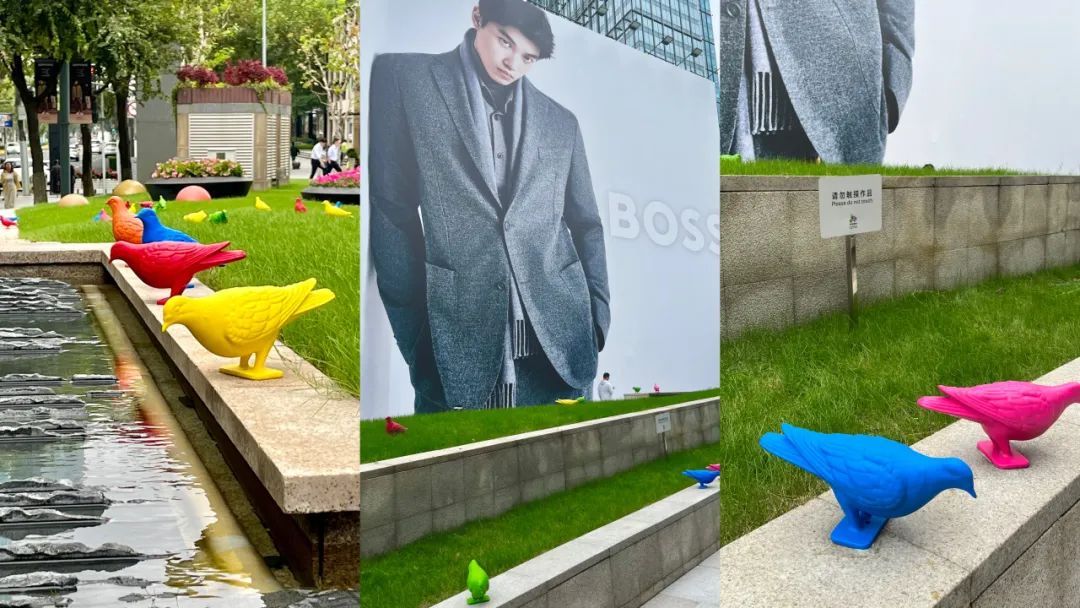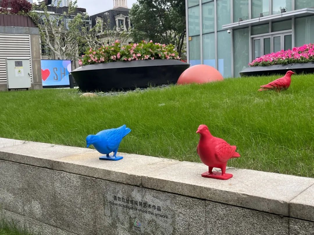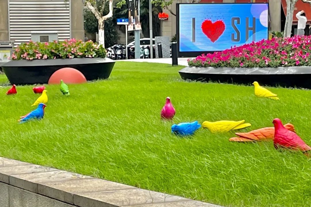 在刚刚过去的这个周末,随着2024年游泳世界杯上海站的火热开赛,来自全国各地的泳迷齐聚上海,为游泳健儿们加油助威。 而在赛场之外,静安有一处广告牌也“火”了——众多泳迷来到静安嘉里中心,打卡中国游泳队奥运冠军汪顺的巨幅地广和同款机位。 在全国泳迷打卡照片里留下身影的, 还有地广前的草坪上 五颜六色的“鸽子”艺术装置。 “挺好奇这些小鸽子是干什么的,没见过这种艺术装置,感觉点缀在照片里还挺特别的。”来自湖北的泳迷小赵告诉记者。 这些五颜六色的“鸽子”共有40只,是2024静安国际雕塑展在南京西路延伸展区的一个点位,由英国艺术家帕特里克·墨菲为本届雕塑展全新打造的装置作品《归属感》。 鸽子,这一象征意义丰富的动物,既代表和平与希望,也曾在中国古代社会中充当传递信件的使者。随着城市秩序的逐步建立,成群的鸽子逐渐从城市中消失。然而,这一次,它们成为了南京西路上的多彩访客,悄然融入上海市中心的独特风貌中,展现了在城市空间中,不同个体自由生活并建立连接的可能性。