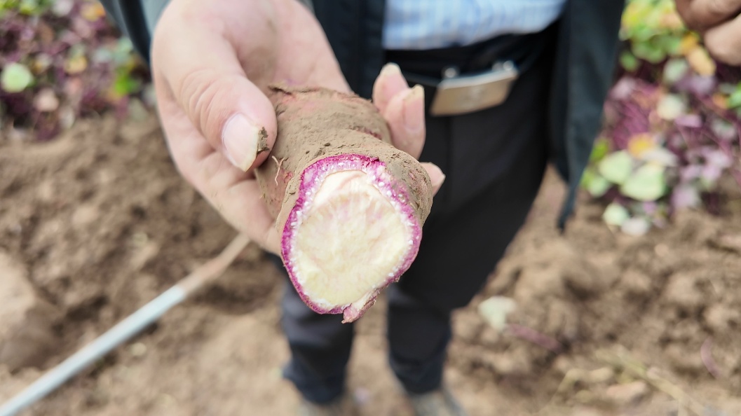 六滧村党总支书记郁超告诉记者,该品种名叫“安娜蜜蜜薯”,是广东省农科院引进的最新品种,由板栗甘薯与紫薯在种植过程中自然杂交形成,后经广东省农科院提纯,口感得到进一步优化。“这种蜜薯的口感香甜、纤维细腻、入口即化,所以又被称为‘冰淇淋’蜜薯。因为有板栗薯的基因,所以它的口感吃起来也有板栗的糯香。”郁超说。