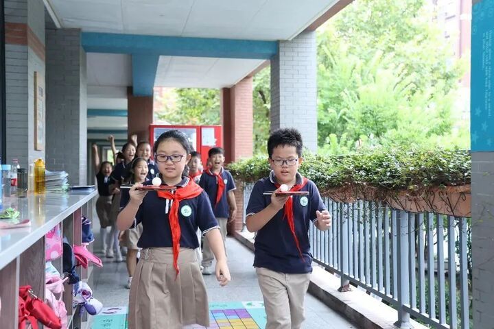 早上9点多,南京市光华东街小学课间休息,学生们走出教室,在老师的带领下玩着各类游戏。南京市光华东街小学副校长谢珺以《光东校园24小时:全方位防近行动,让眼睛亮起来》为题,介绍了“江苏省近视防控示范校”的相关实践。她说:“作为江苏省近视防控示范校,我们严格按照教育部发布的《中小学学生近视眼防控工作方案》,为学生创建良好的视觉环境。每间教室都有护眼灯,有标准的课桌椅,保证第一排的课桌与这个黑板能达到2米。同时,每天上下午大课间,保证孩子能在学校活动1个小时以上。体育课除了有常规的国家课程以外,还有特色的项目——这个课程一般是投掷项目或者球类项目,对于眼睛焦距的变化,放松眼睛都有着比较好的作用。”