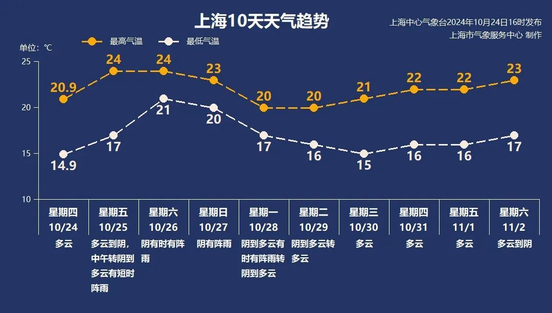 由于台风“潭美”的存在,未来几天上海主要受其北侧偏东气流影响,云系较多,雨水频繁。周六有时有阵雨,周日(27日)冷空气和台风外围共同影响,降水更加明显。风大雨大,提醒双休日,尤其是周日有出行计划的朋友及时关注,合理安排。