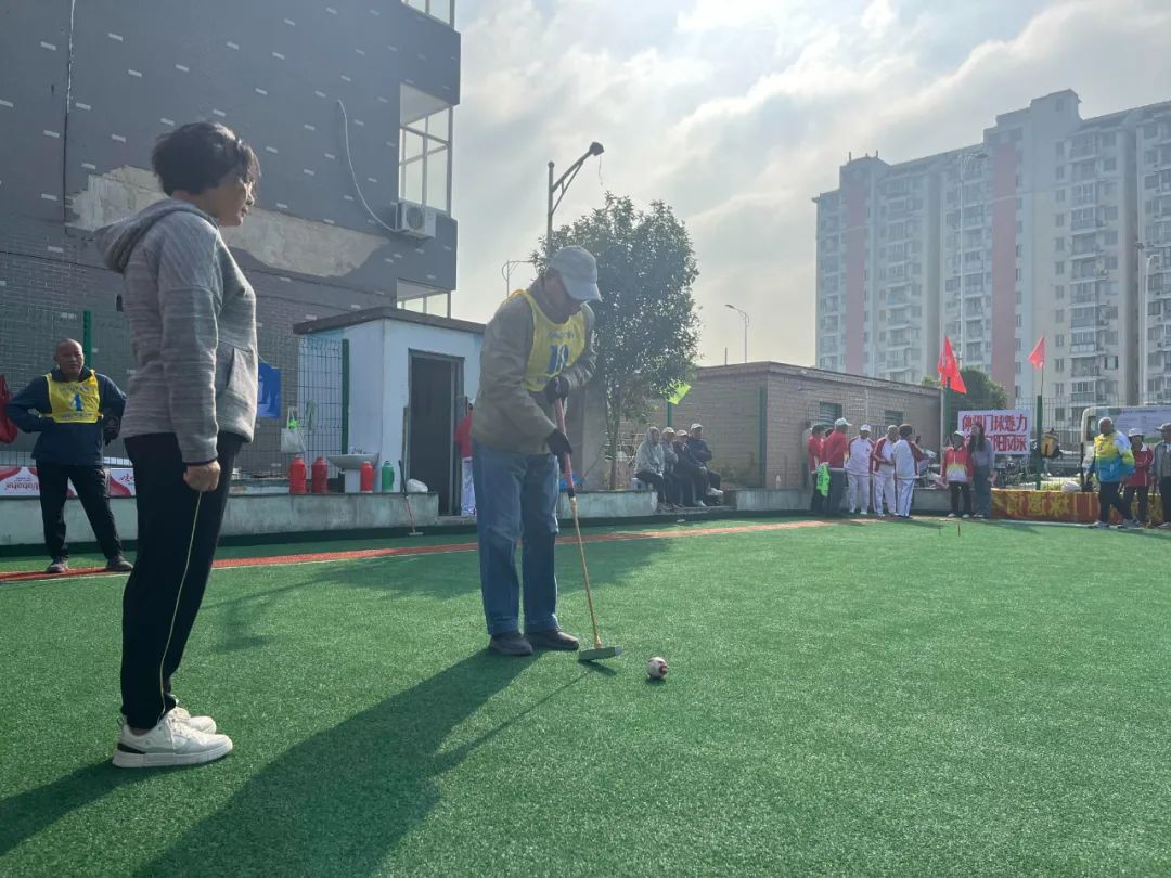 这几天秋高气爽,奉贤西渡发展村门球场里打球、看球的村民越来越多。门球队就邀请了周边区的队伍来打一场快乐友谊赛,平均年龄都在六十七岁的运动员们在门球场上快乐走位,潇洒挥杆,欢声笑语,成了一群老顽童。 在发展村门球场内,来自奉贤、金山、松江、闵行的12支门球队正在轮流切磋球技。白发苍苍的他们手握球杆就立刻精神抖擞,瞄准、击球,动作娴熟,一气呵成,每一次精彩的击球都赢得现场阵阵喝彩。比赛采取团体赛制,12支队伍抽签后,分为4个小组,争夺每组第一。不少队员表示,门球运动让大家的身体得到了锻炼,还结识了一群志同道合的“老伙伴”,时不时就要聚在一起来场友谊赛。 薛春萌是上一届金山区老干部局门球队的老队长,队长虽然不做了,球还是要打的,来到熟悉的发展村门球赛,她觉得特别高兴,她说:“我们一起比赛,一方面是增长球技,另一方面就是要身体健康、身心愉快。奉贤打完了,我们请他们到金山去打球,我们也组织一个门球比赛。” 对于发展村的村民来说,门球运动一点都不陌生。从2003年成立门球队以来,发展村门球队已经参加过大大小小上百场门球比赛,还曾受邀前往澳门参加亚洲城市门球邀请赛,并战胜了日本队。目前,门球队队员平均年龄70岁,年龄最大的是86岁的教练孙雅顺,他们都是村里的老宝贝。“门球是一个室外运动,不仅能够呼吸新鲜空气,还可以晒太阳。大家在一起互相交流,切磋技艺,非常开心,我天天和队员们一起训练,人也活力四射。”孙雅顺一边指导队员,一边兴高采烈地表示。 发展村大学生村官马雨婷补充道:“我每天都能看到爷爷奶奶们训练,每天早上7点半到9点,只要不下雨,他们都会在这个门球场打球。村里每年都会承办一次门球赛事,各个地区也会邀请我们的球队去参加。” 门球虽然具有竞技性,但运动不剧烈,是广大老年朋友十分喜欢的一项运动,它的观赏性、趣味性也非常突出。村里的专属门球场每天都很热闹,门球队队员几乎天天都会“报到”,有空闲的村民也会时不时前来打球或是观赏,村里还经常承办较高规格的门球大赛,让“老宝贝们”可以一展身手。