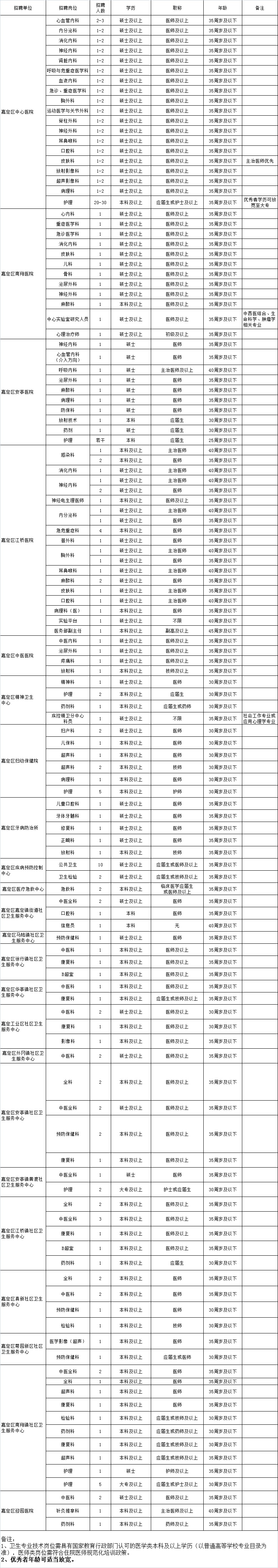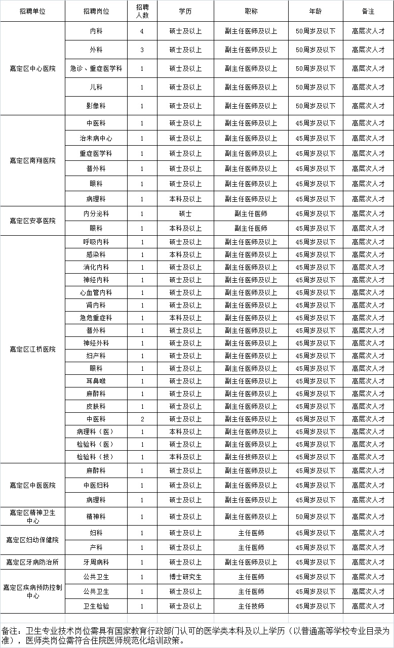 2024年嘉定区卫生人才秋季招聘会中初级岗位