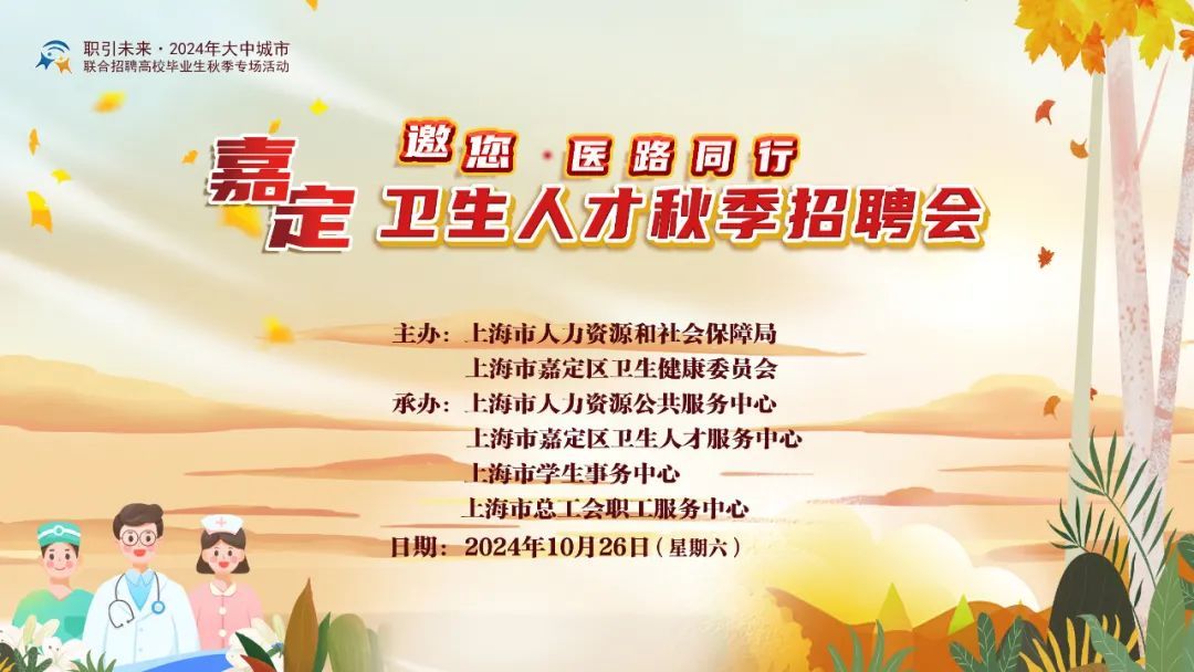 上海市嘉定区作为上海“五个新城”之一,正全力打造现代化新型城市。为了满足“五个新城”建设对高校毕业生资源的需求,促进上海医疗卫生人才高质量充分就业,将举办“嘉定邀您·医路同行”卫生人才秋季招聘会,届时有23家医疗卫生单位推出160多个岗位,面向社会公开招聘各类医学专业人才。