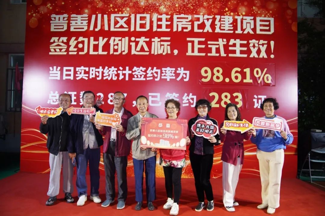 “我宣布,静安区天目西路街道普善小区旧住房改建项目正式生效!”10月25日,静安区天目西路街道普善小区旧住房改建项目正式启动签约,截至当晚8时,项目签约率已达到98.6%,签约首日即生效。