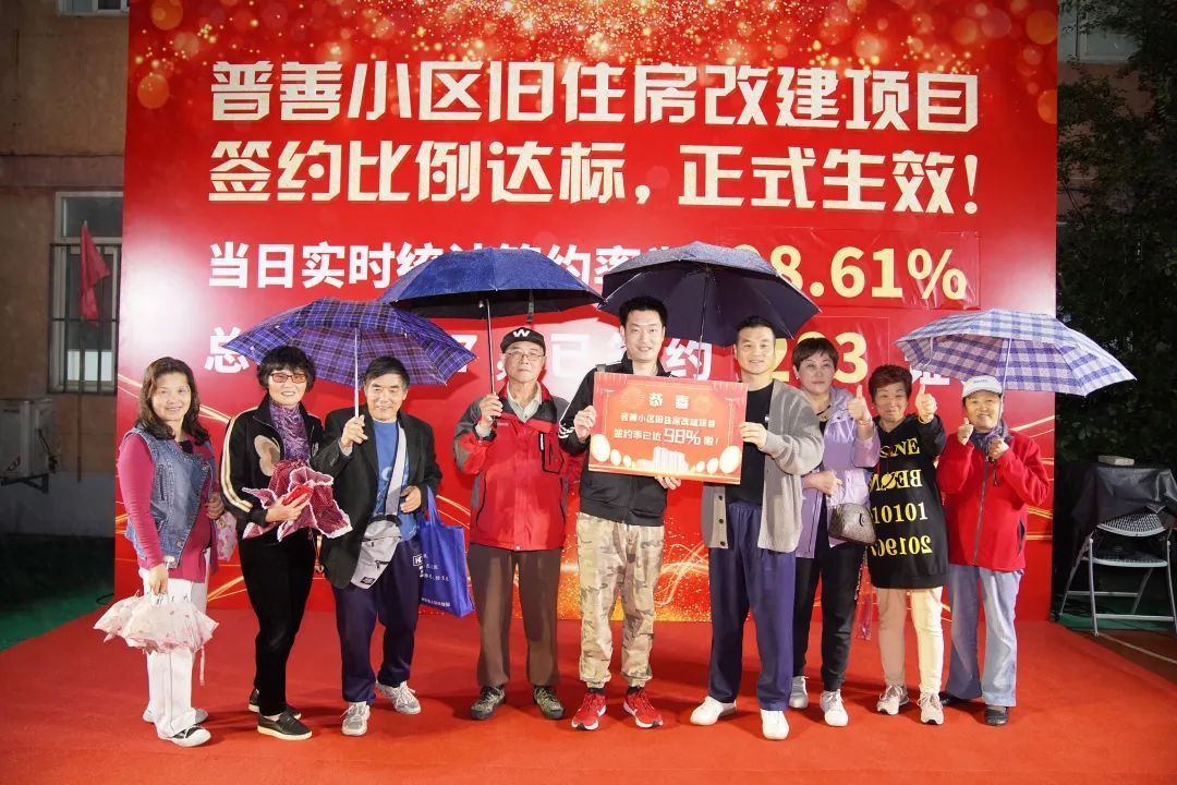 当宣布该小区改建项目正式生效的那一刻,在场居民早已按捺不住内心喜悦,欢呼雀跃、热烈鼓掌,表演队锣鼓、礼炮齐响,庆祝这一激动人心的时刻。
