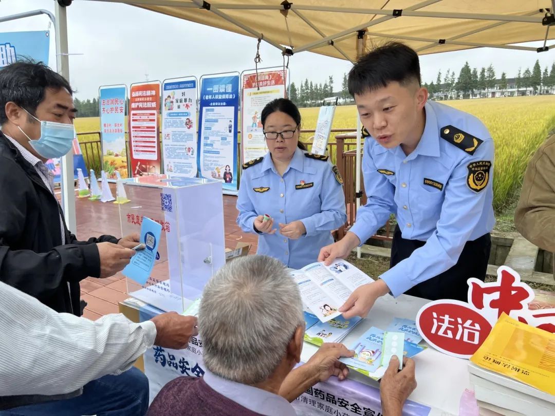 活动现场,泖港镇市场监管所、华东政法大学法律援助中心设立服务台。泖港镇市场监管所工作人员为村民普及《药品管理法》及药品安全知识,并结合《化妆品监督管理条例》指导村民如何选用日用化妆品。华东政法大学法律援助中心志愿者服务队在现场普及《民法典》等法律常识,并耐心解答村民们日常遇到的法律问题,拉近了法律与民众的距离。