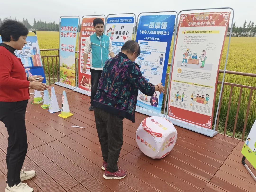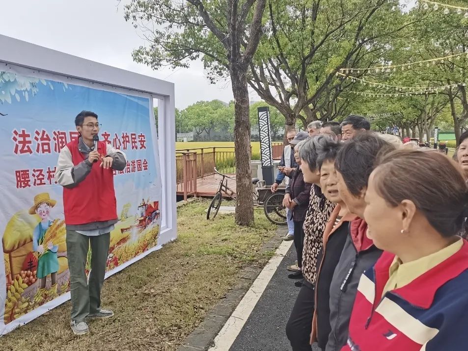 法治宣传如何更贴近村民?近日,泖港镇腰泾村和胡光村工作人员、市场监管执法员、华东政法大学法律援助中心志愿者们以“田间游园会”的形式,为村民带来了一场法治游园会。在亲身体验学习和交谈中,老年人们对易触犯法律的“小事”有了全新认识,一个个法律困惑也得到了专业解答,法治宣传由“单向输出”转变为“双向奔赴”。