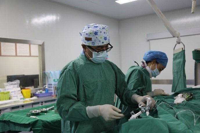 交汇点讯 10月23日,在西藏大学附属阜康医院,一台特殊的心脏介入手术正在举行。站在手术台边的是南京明基医院副院长、心血管专家李新。阜康医院心血管科医生团队全程观摩学习了手术的过程。