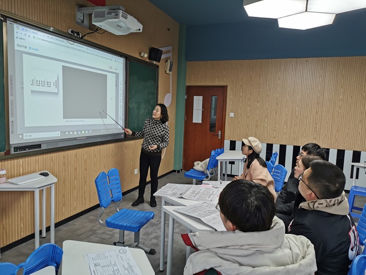 这样的变化得益于学校小学音乐学科有中国教科院许洪帅博士的指导,该项目的主要参与者——任教低年级的李春老师和王媛媛老师通过开展顺序性音乐教学实践活动,从节拍感的稳定,节奏感的建立到音高感的训练,夯实学生的音乐基础素养。在教学时,老师们发现,钢琴弹奏声音过大情况下,学生们视唱练耳效果会打折扣,影响音准的训练,用一个音叉来清唱学习时,学生自己就会辨别自己发音是否准确,但同时大大提高了老师的课堂教学难度。像这样随时需要调整的实际问题,两位老师每周通过录课方式对许博士的指导予以反馈,并在每周五下午通过视频会议在许博士指导下进行顺序性音乐教学的教研。在这样持续高强度的努力下,学生们逐渐养成了良好的聆听习惯和有控制地歌唱习惯,嘶吼式、咆哮式的歌唱消失了,学生音乐素养显著提高,学校音乐教育生态有了极大转变。学生在参与华师大教学展示中得到了专家们一致好评。李春老师参与顺序性研究的课也获得许洪帅博士团队和正高级教师市教研员席恒老师的认可,在今年顺利获评嘉定区小学音乐学科骨干教师,她用热爱和勤奋浇灌出了顺序性教学的显著成果。针对中高年级的音乐课堂,改变也在同步发生。从2022年9月起学校作为数字化转型市级音乐学科试点学校,在五年级中开展数字化转型的实践。其中音乐教研组的刘婧、蒋奕飞、高旭丹三位教师作为项目的主要实践者,一方面在教学实践中开展活动,一方面还作为数字化转型资源库的建设者,参与市级教学资源制作。