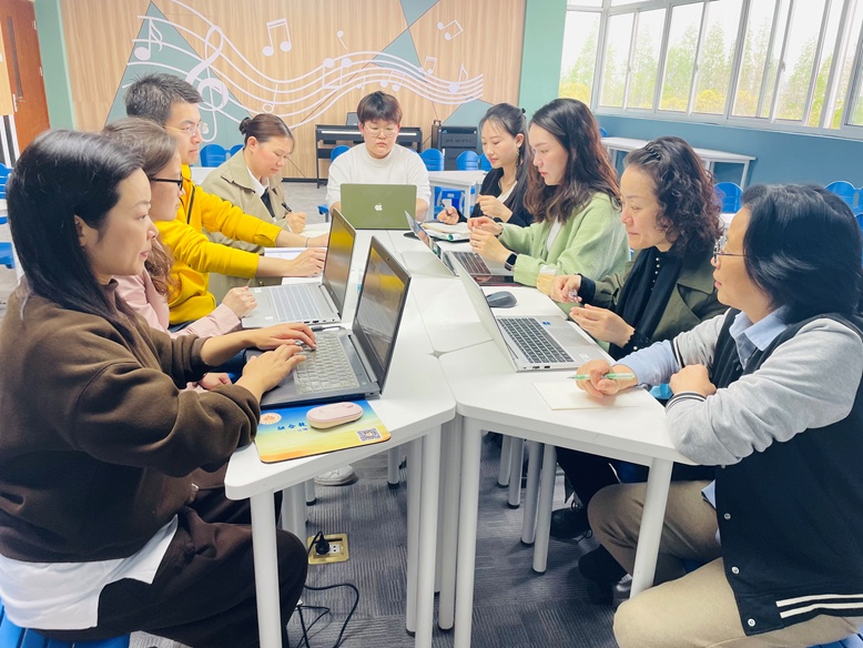 音乐教研组逐步形成了“乐学、乐教、乐研、乐创、乐协作”的校本音乐共同体“五乐文化”,努力夯实日常教学,高度重视校本教研的质量,在互帮互助中共同进步。刘婧基于学校农村学生艺术素养提升瓶颈问题进行调研和分析,带领大家一起于2021年申报并立项了市级课题《具身认知视域下农村小学艺术学习生态优化的实践研究》,由此,融汇教学、项目,从音乐学习氛围、音乐课堂、社团课程、家校社联动方面进行研究,助力双减。音乐组李春老师将具身体验结合顺序性教学进行探索,深耕不辍;王媛媛老师则是通过民族舞蹈的具身体验展开研究;高旭丹老师从电子竖笛的教学方面开展音乐具身体验的研究;蒋奕飞老师从数字化转型方面开展音乐体验研究。蒋奕飞介绍,在教学中以新课标教育理念为指导,根据市、区的教研主题确定校级研修主题:核心素养导向下的教与学方式变革实践——数字化转型与顺序性音乐教学的实践研究。“去年至今年,刘婧和我共在市教研室和区级平台上分别做汇报和展示4次,获得了市区领导和专家的高度好评。”她说,基于新艺术课标,组内老师们认真研读、更新理念,依托专家指导,努力转变教学的思维方式。不仅四年级的音乐绿标测试较2019年获得明显提升,老师通过教学研究,教学实践能力也获得明显提升。王媛媛、高旭丹2位教师分别获得区中青年二等奖、区教学新秀三等奖,实现了个人教学评比获奖零的突破。蒋奕飞老师进行了区级交流和展示。李春老师顺利晋升一级教师,并获评区级骨干。刘婧被纳入“教育部学科领军教师”培养对象,案例获得市级一等奖。在大家的共同努力下,音乐教研组获得了2023学年度优秀教研组。