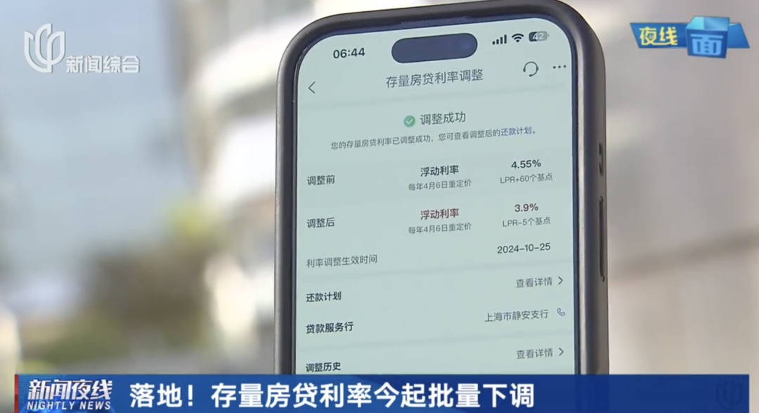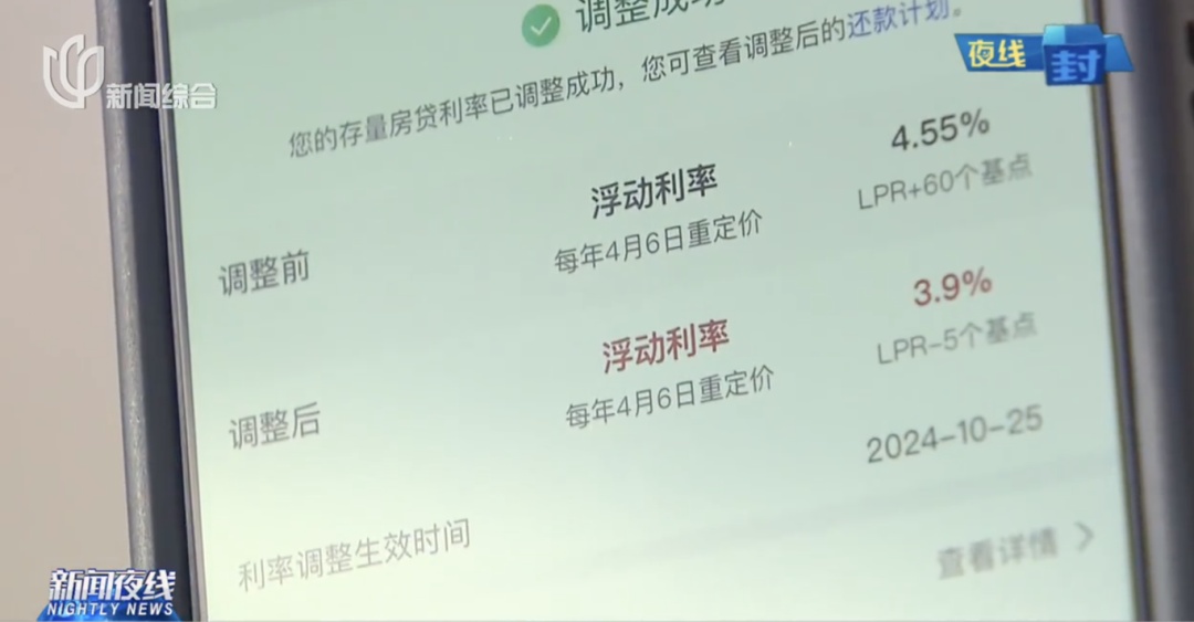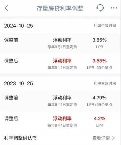 “您在我行的存量房贷利率已经调整成功,可以前往APP中查询。”25日上午8点,杭州人金先生收到了银行的短信。随后金先生查到,自己的房贷利率已经从3.85%调到了3.55%,等到明年重定价日,还能再降至3.3%。