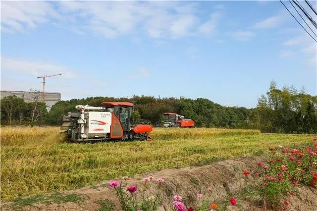 10月25日上午,山阳镇长兴村大农户开启秋季首批稻谷收割工作。 在长兴村稻田里,收割机来回穿梭,稻穗被迅速割下,稻谷被有序地收集进拖拉机的车厢。之后将被送往加工厂,经过筛选、烘干等工序后,向市场供应。 据了解,该批次种稻共261亩,品种名称为“申优26”,相较于其他品种更为早熟,亩产量较高,约1300斤。此次收稻160亩左右,剩余稻谷预计下月初进行收割。 稻田边一排排菊花随风摇曳,这不仅是一道亮丽风景线,更是农户们绿色防控的新智慧。 上海金银农机服务专业合作社负责人何金银介绍,通过在稻田周边种植菊花,可以吸引蝴蝶前来产卵,从而减少害虫对稻谷的侵害。这种利用自然生态链进行害虫控制的绿色防控技术,既能减少农药的使用,又可以保护稻谷健康生长。 通讯员:刘诗寒 编辑:陆辰丽