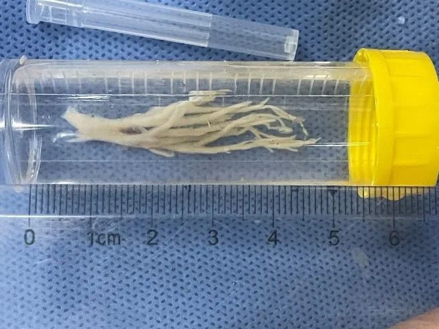 近日,4岁的小韩(化名)在父母的陪伴下,来到上海市儿童医院呼吸科就诊。“孩子三天前突发咳喘,后来还出现发热。”接诊的呼吸专科门诊医生通过胸片检查发现,小韩的两肺纹理增多,右上肺高密度影,可能存在感染性病变,随即将他收治到呼吸科病房。 手术现场 没想到的是,住院后小韩的血氧饱和度持续下降,最低仅89%,并出现了呼吸衰竭症状。“我们立即进行了肺部CT检查,发现孩子的右肺上叶影像完全消失,右肺中有少量胸腔积液。”呼吸科副主任顾浩翔第一时间与家长沟通,告知病情危重及后续治疗措施。“我们要马上进行电子支气管镜检查,先明确右肺上叶影像消失的原因,同时做病原学检测,才能对症下药。” 患儿右肺上叶“消失” 当电子支气管镜进入患儿肺部,顾浩翔发现右肺上叶开口处被白色痰栓完全填塞。“正常情况下右肺上叶三支开口的地方,被黏稠的痰栓完全堵塞,而且有继续增加蔓延的趋势。”顾浩翔进一步解释,这些痰液是患者肺部感染后,痰液没有及时排除,黏稠的炎性的分泌物不断积聚在气道内,最终堵塞气道造成的。 经呼吸科内镜团队讨论,最终使用较粗直径的(4.0mm)支气管镜,经内镜下2.0mm吸引孔,异物钳钳取联合负压吸引,仅用不到10分钟时间,取出两条长约5cm,看上去就像短树枝一样的完整塑型痰栓。 取出痰栓后的第二天,小韩病情明显缓解,缺氧症状消失,氧饱和度稳定于98%以上。在一周的抗感染治疗后,复查胸片予以出院门诊随访。 完整的塑型痰栓 经过病理分析,小韩得的是塑型性支气管炎,是儿科急危重症之一,往往较常见于重症支原体感染,会导致气道的内生性异物造成广泛性支气管堵塞,影响肺的通气功能,严重者发生呼吸衰竭甚至危及生命。“塑型性支气管炎起病急、进展快,可引起严重气道阻塞、呼吸困难,选择合适的支气管镜尽早取出塑形痰栓是治疗塑形支气管炎,避免呼吸衰竭,最行之有效的方法,但完整取出塑形痰栓难度较大。”顾浩翔提醒,一旦发现孩子突然出现发热不退,呼吸困难、面色发紫、烦躁不安等症状,应立即将孩子尽快送往医院救治,以免延误治疗危及生命。 上海市儿童医院呼吸科是我国最早开展可弯曲支气管镜检查的儿童专科医院之一,同时也是全国首批儿科呼吸内镜培训合作单位之一,是上海地区最大规模儿童呼吸专科。自2006年开展支气管镜检查至今,医院累计完成儿童局麻及全麻下支气管镜三、四级手术超10000例,年均完成千余例支气管镜检查及治疗,包括儿童重症肺炎、深部支气管异物、中央气道狭窄、中央气道占位、食管气管瘘、先天性气道畸形、肺部间质性疾病、肺动脉吊带、咯血等高难度病种。