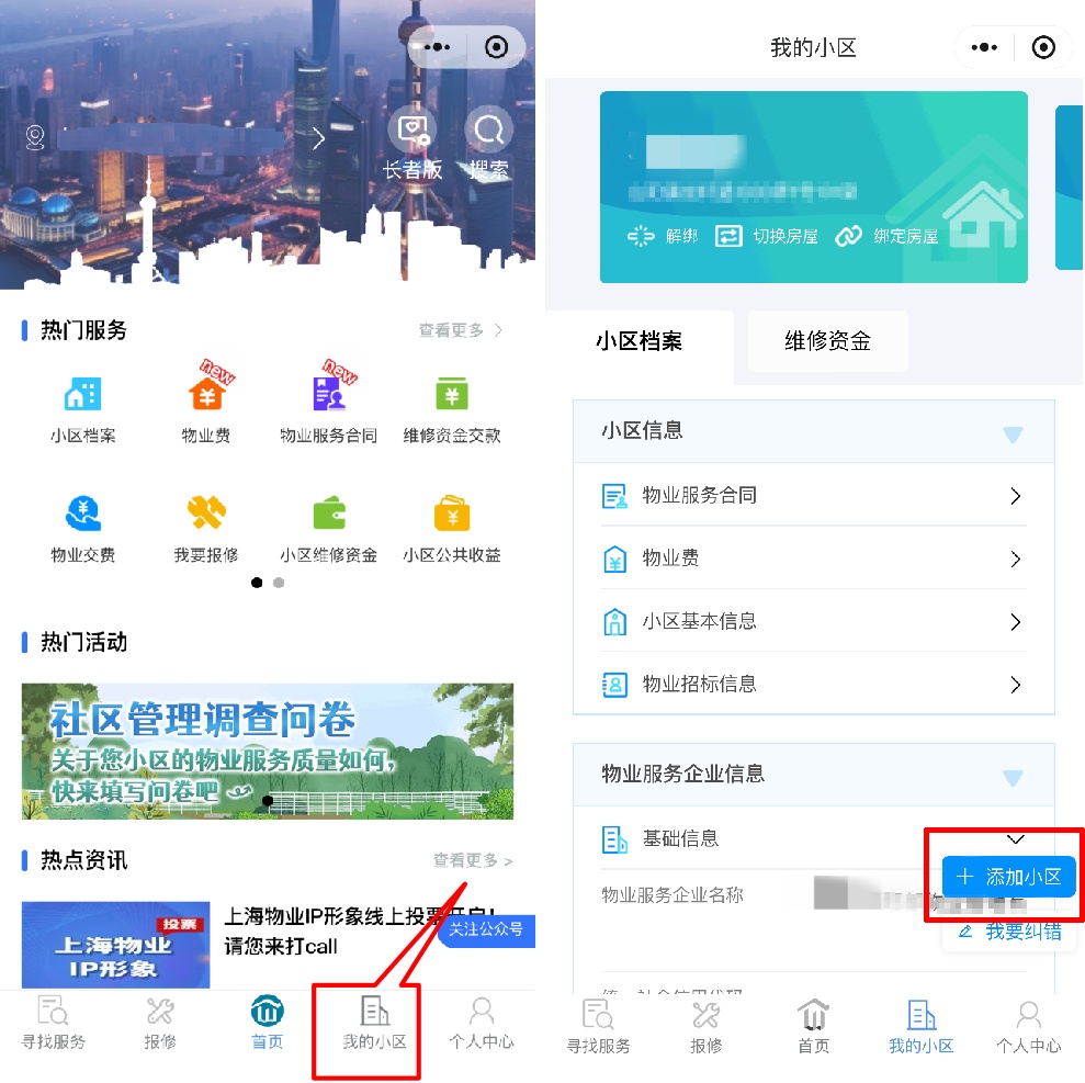 点击底部“我的小区”-“添加小区”添加您的房屋,支持手动搜索,还支持地图搜索小区,一键添加房屋。