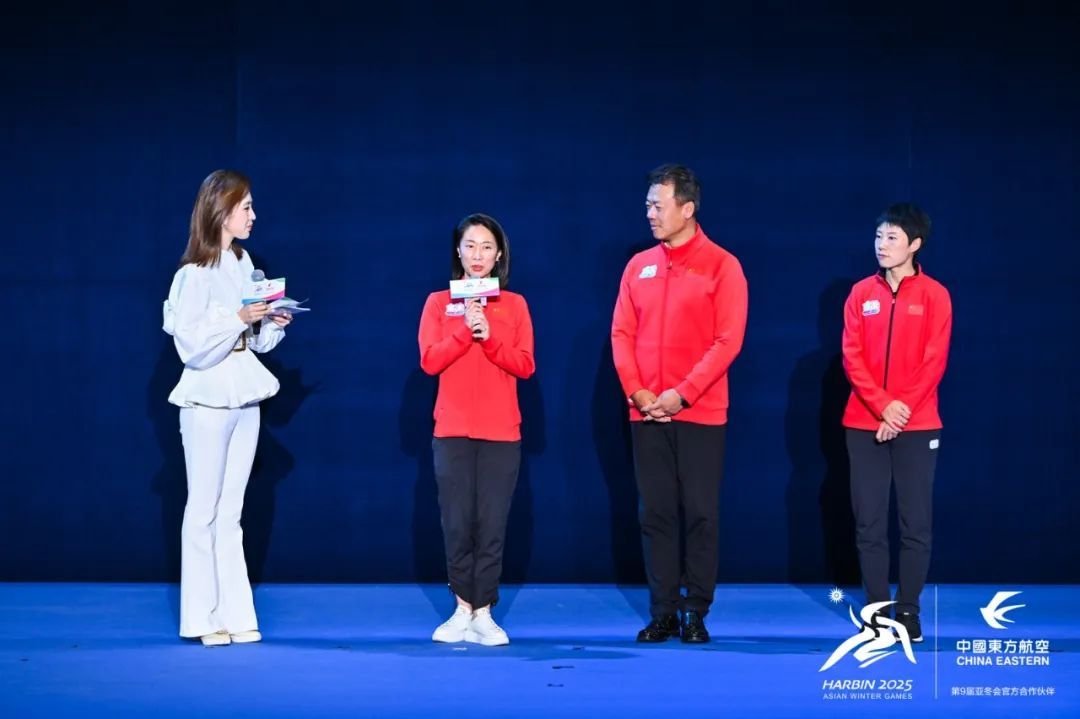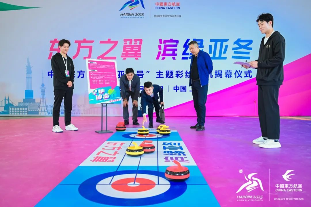 中国东方航空集团有限公司总经理、党组副书记刘铁祥,第九届亚洲冬季运动会组委会副秘书长、哈尔滨市人民政府副市长张海华出席仪式并致辞。民航华东管理局党委书记姜春水,中国东方航空集团有限公司党组成员、副总经理万庆朝,第九届亚洲冬季运动会执委会副秘书长、哈尔滨市体育局局长柏志国等领导出席仪式。张海华、万庆朝、姜春水和奥运冠军申雪、赵宏博、张会,以及东航形象代言人胡歌、亚冬号彩绘机首航飞行员代表王睿一起轻砸冰雕,激活“飞机裸眼AR立体秀”,东航“亚冬号”由此在一片惊叹声中亮相。这架主题彩绘机将化身亚冬会“空中大使”,邀请广大旅客共赴哈尔滨,感受“冰雪同梦、亚洲同心”的体育盛会。