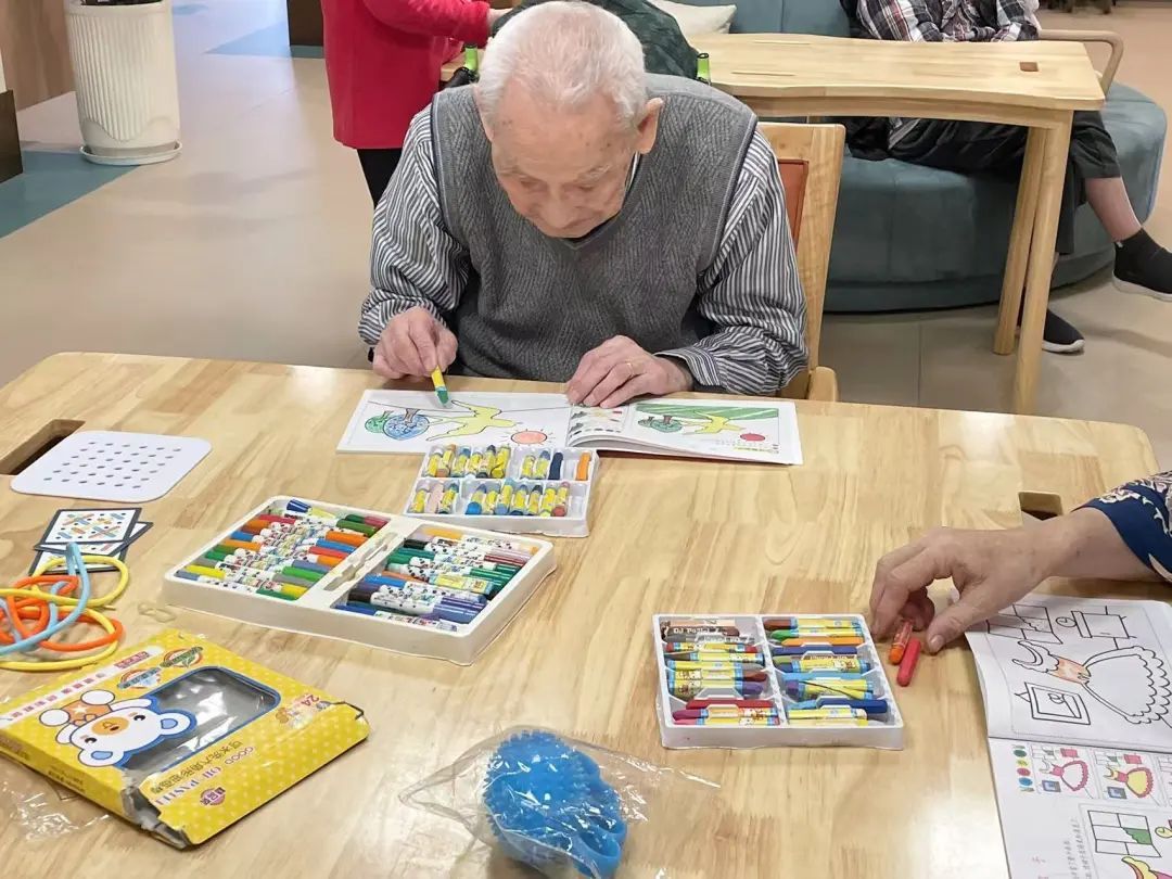 老人们则在各自“忙碌中”,101岁的黄阿伯正在画画,104岁的彭阿婆则正在拼图,他们的动作虽然缓慢,但却十分认真。当我们走近时,他们都热情地和我们打招呼。
