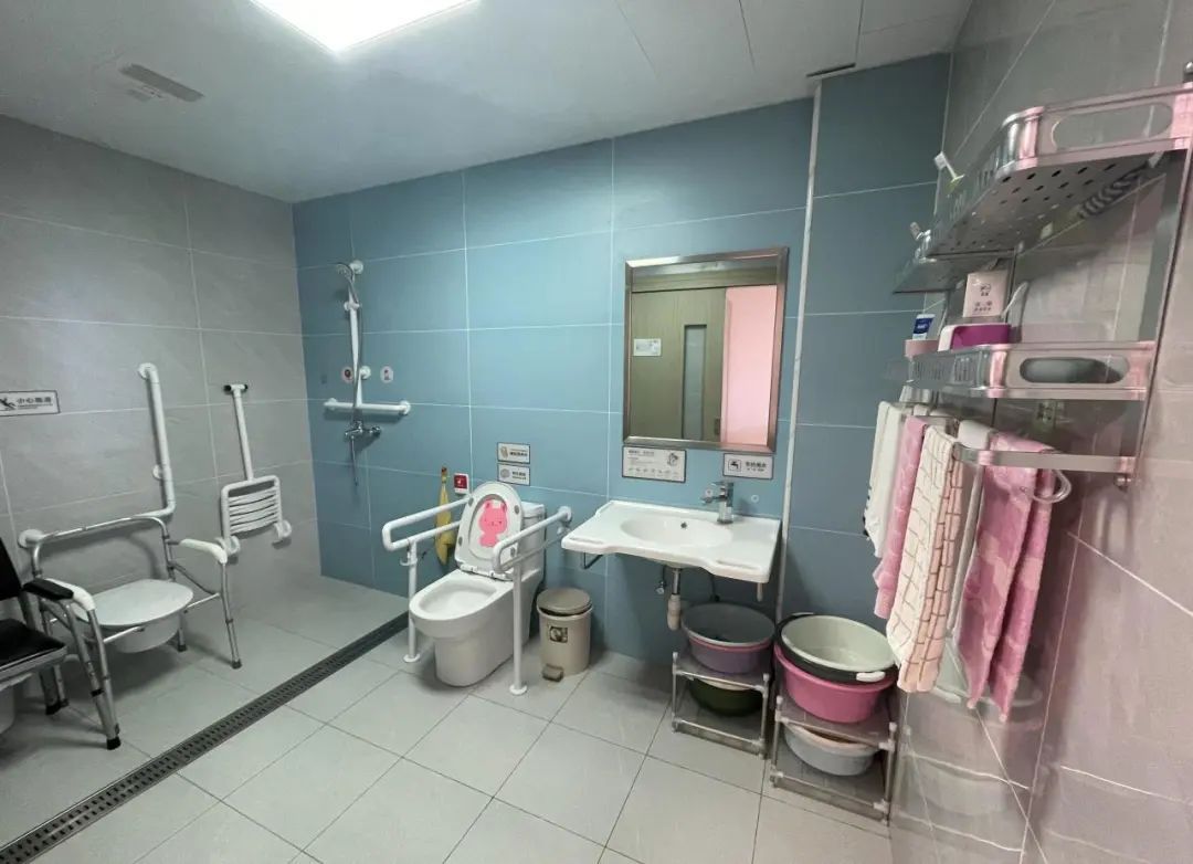 对于高龄老人来说,摔跤往往是一件“不可承受之痛”。因此,养护院在适老化改造上做到细致入微,从走廊的扶手、桌角的防撞处理到卫生间助力架,每一个细节都精心设计,不仅降低了老人摔倒的风险,而且为老人提供了更多的便利。