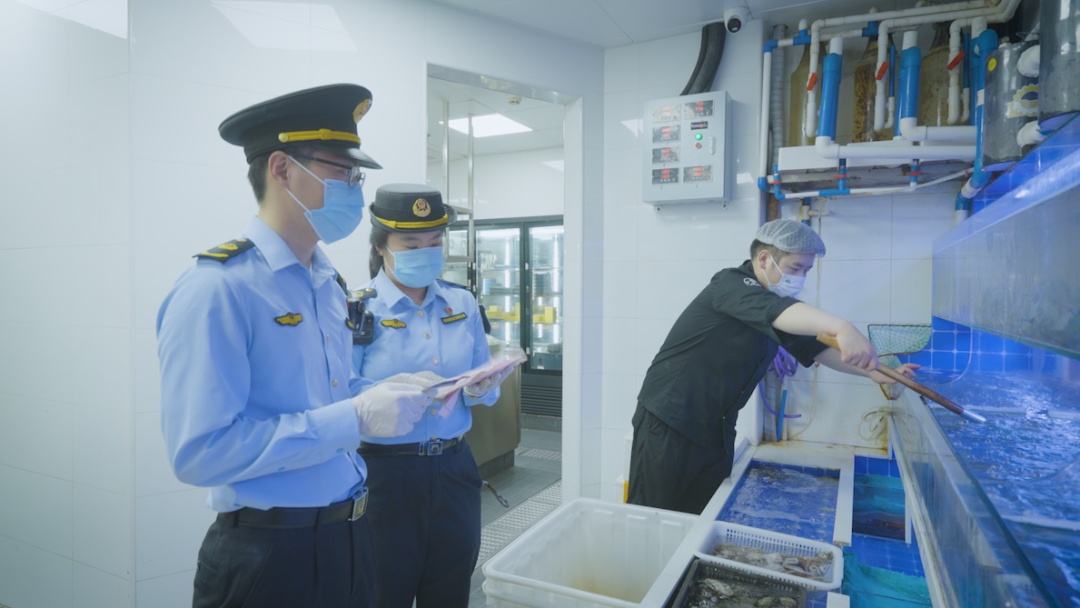 执法人员随机选取了一家位于CP静安商场内的“网红餐厅”进行检查。检查中,执法人员重点围绕餐饮服务提供者资质、从业人员健康管理、原料进货查验、食品储存、水产品的处理及加工制作过程、场所环境卫生、餐具清洗消毒和设备设施清洁维护等关键环节进行了全面细致的检查。