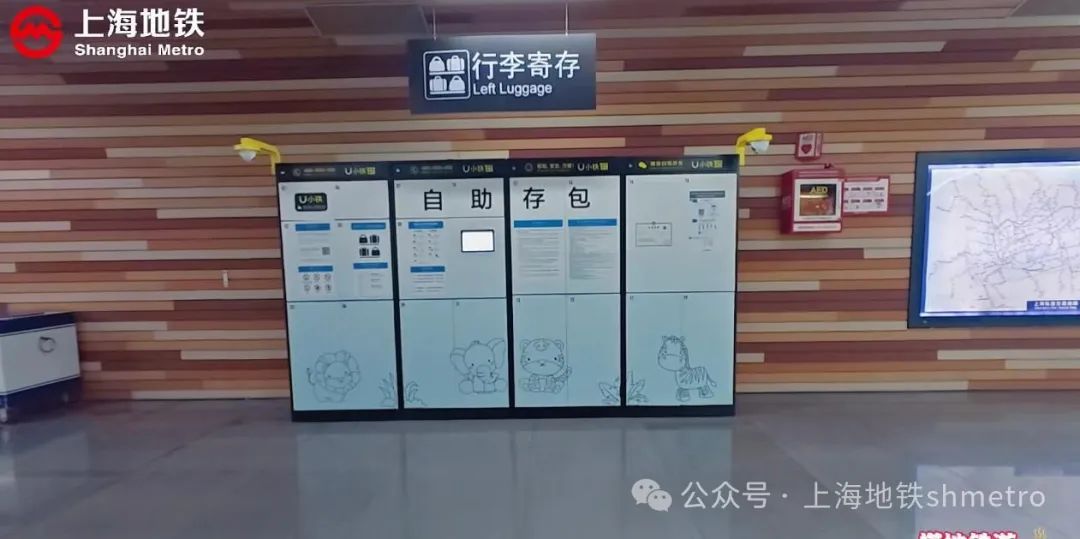 本期视频的一开始,璐璐醬就要和大家说一下乘梯安全。由于自然博物馆深受小朋友的喜欢,带着孩子乘地铁前来观展的乘客非常多,在乘坐自动扶梯时一定要拉好扶手注意安全哦,车站在自动扶梯的上下处都张贴了可爱的漫画提醒,还采用了童声播报提醒大家注意安全,可谓煞费苦心了,安全出行,大家可要牢记在心哦。另外我们说下服务,考虑到外地游客出行的需求,车站还设有行李寄存柜,方便乘客寄放行李哦,是不是很贴心啊。