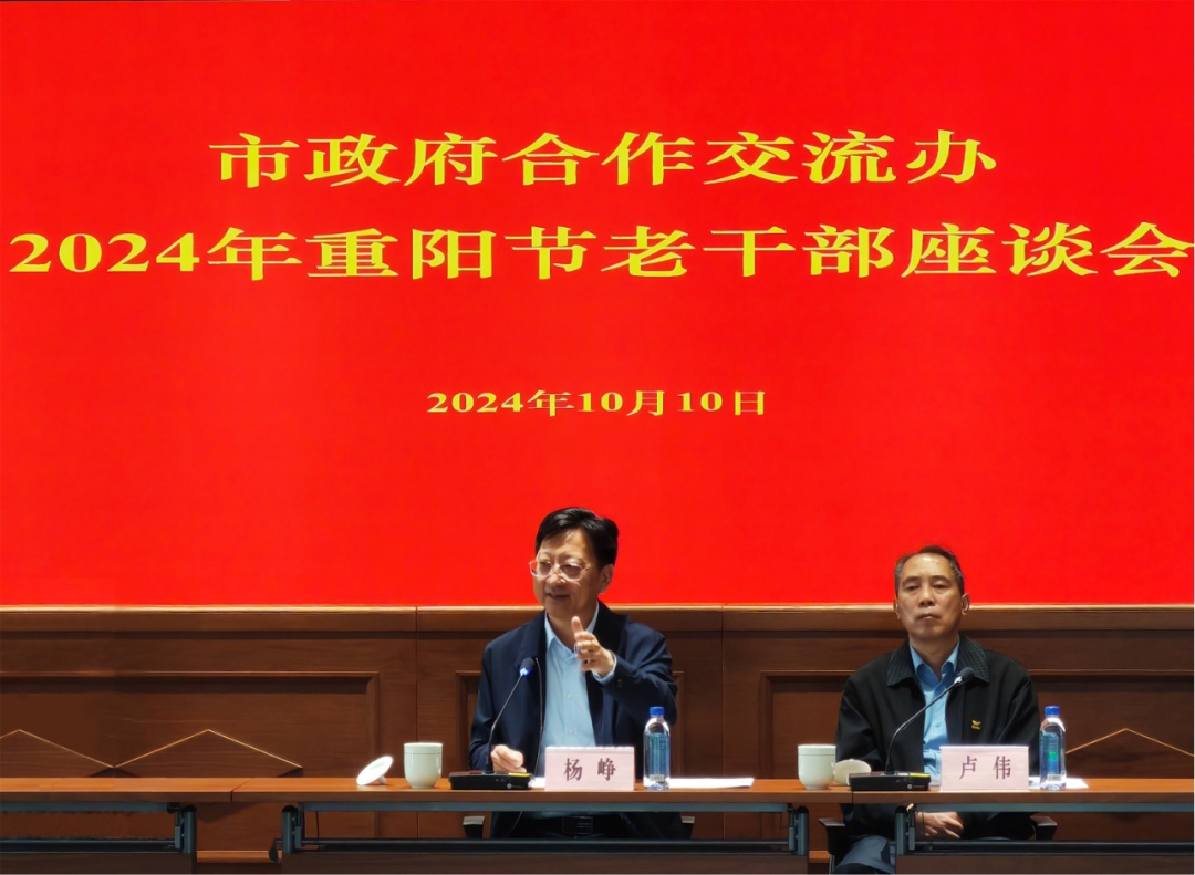 金秋十月、金风送爽,在2024年重阳节之际,市政府合作交流办组织退休老同志举办重阳节老干部座谈会,办党组书记、主任杨峥同志出席会议并代表办党组向老同志致以节日祝贺。会议由办党组成员、副主任、直属机关(单位)党委书记卢伟同志主持,办机关相关处室负责人参加。会上,杨峥同志同老同志们一起座谈,通报今年以来办党组的主要工作及四季度工作安排,介绍了合作交流工作取得的新进展、新成效,向长期以来为合作交流事业默默奉献、倾尽心血的老同志们致以衷心的感谢,希望老同志们保重身体、安度晚年,为合作交流工作多提宝贵意见、多出务实之策。会后,老同志们赴中华艺术宫,集体参观了“庆祝中华人民共和国成立75周年人民城市——上海现实题材美术作品展览”。