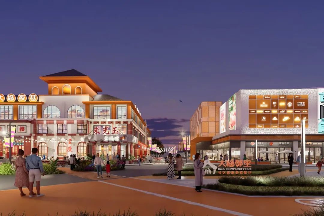 落地荣乐中路8号(原卜蜂莲花)的大橘邻里(松江岳阳)由A、B两个区域组成,总面积近30000平方米。除了对原卖场商业全方位调改更新,打造邻里休闲、欢聚的一站式社区商业体,大橘邻里还将沿街商业街纳入改造,打造一条以网红夜消为主题的美食街——“大橘夜巷”,以高品质的夜市经济点亮周边烟火气。