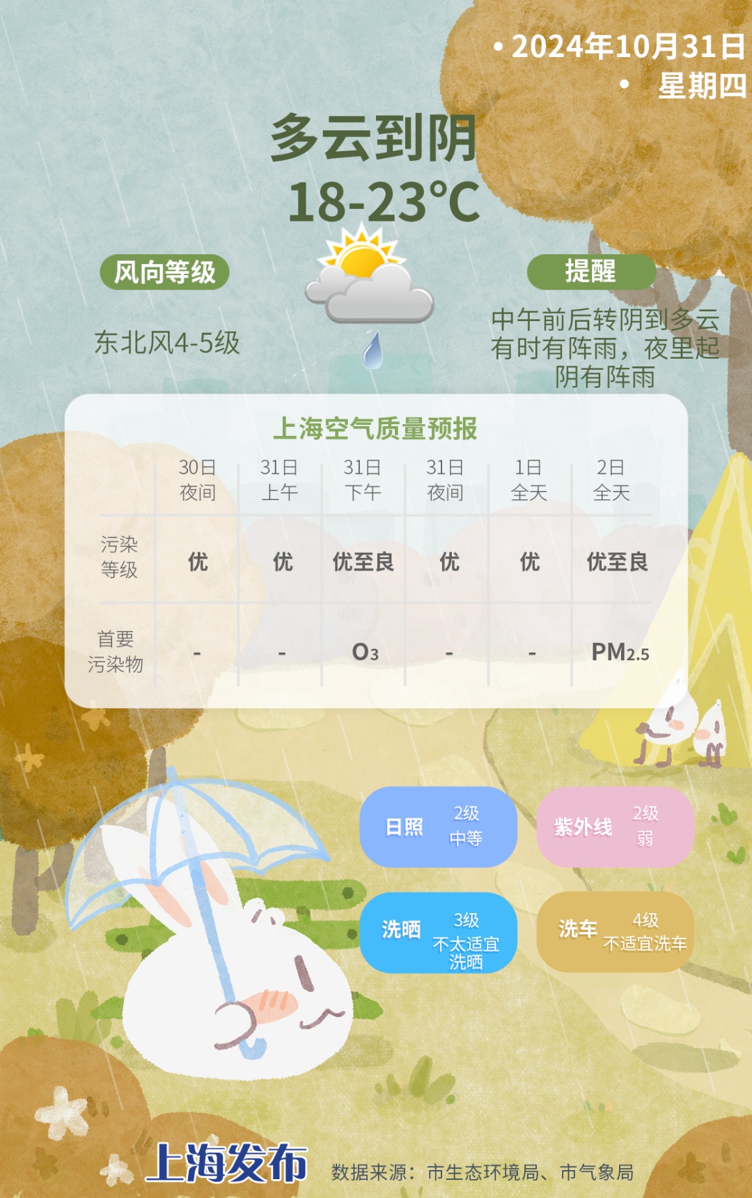 今天夜里起,本市风力逐渐增大。周五以北到东北风为主,最大陆地阵风8~9级,高层建筑及沿江沿海地区阵风9~10级,洋山港区阵风10~11级,11月2日开始风力逐渐减弱。