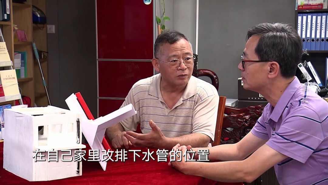 正在家中做着“手工模型”的是居民刘海玉师傅。在具体户型图发布后,一些户型中厨房和卫生间南北竖排,导致卫生间成了暗卫,很多居民不喜欢。有一定专业背景的居民刘师傅得知之后,觉得这个问题可以通过同层排水的建筑结构来解决。为了让大家能够更好地理解,于是他主动做了一个模型。