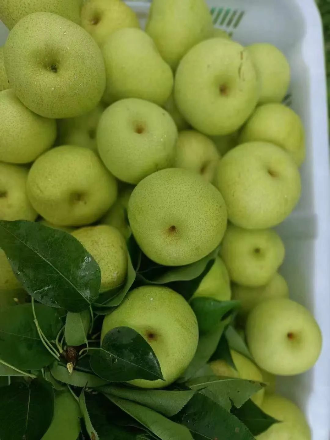 第一次见这种梨,看起来个头蛮大、挺新鲜的,准备买几个回去尝尝。”