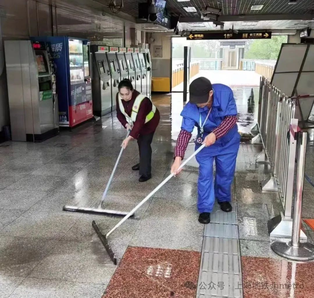 全网络各车站针对防台防汛风险薄弱点,尤其是车站出入口、横截沟、自动扶梯、悬挂物等关键部位加强巡视频次,发现地面积水或设备异常及时处理,确保各项措施和风险点位安全可控。此外,各车站还通过广播播报安全提示,铺设防滑垫及阻水沙袋,及时清理排水沟渠、刮除积水等措施,确保乘客安全出行。